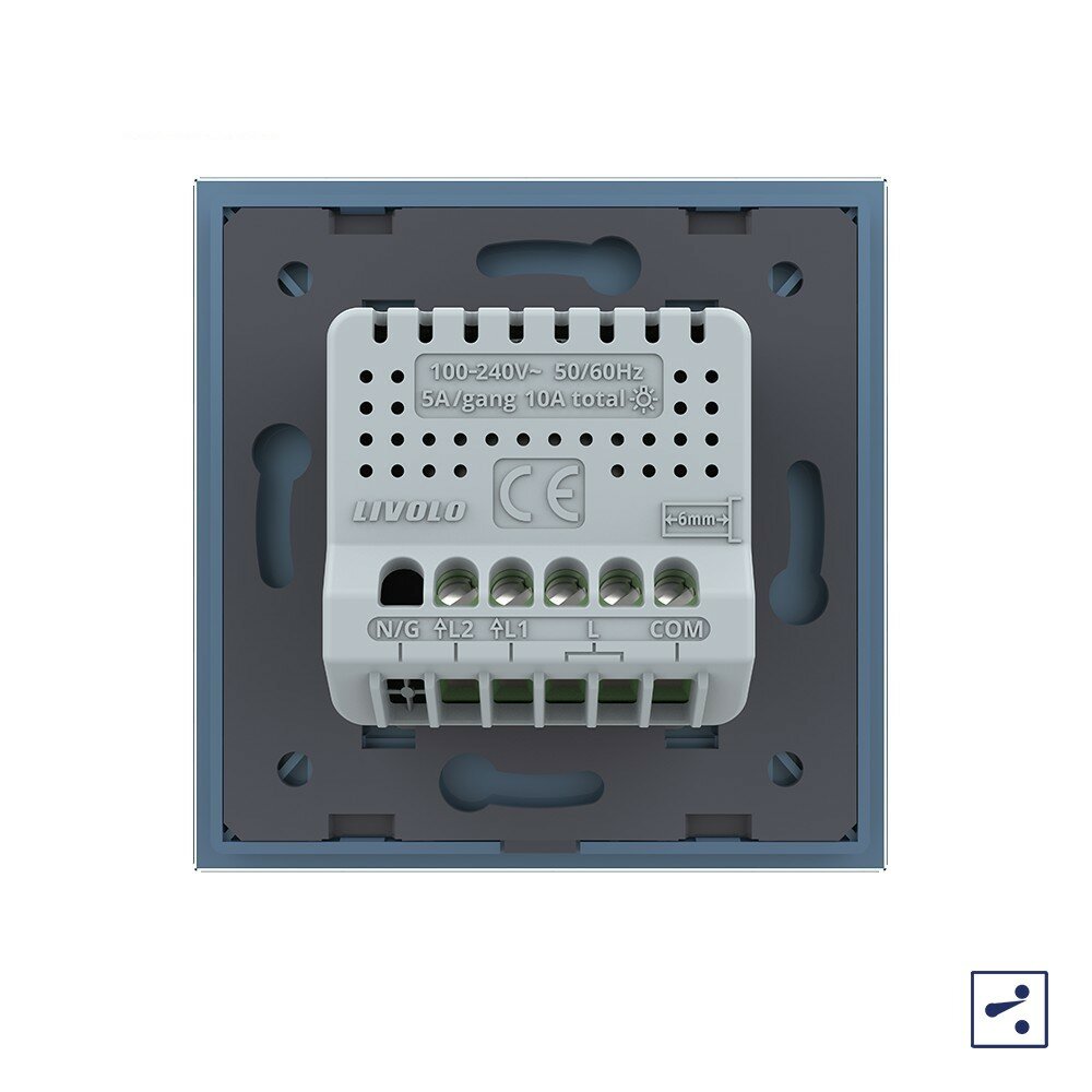 Двухклавишный проходной/перекрестный сенсорный выключатель Livolo, 1 пост, цвет серый (VL-C702S-15) Ливолотач