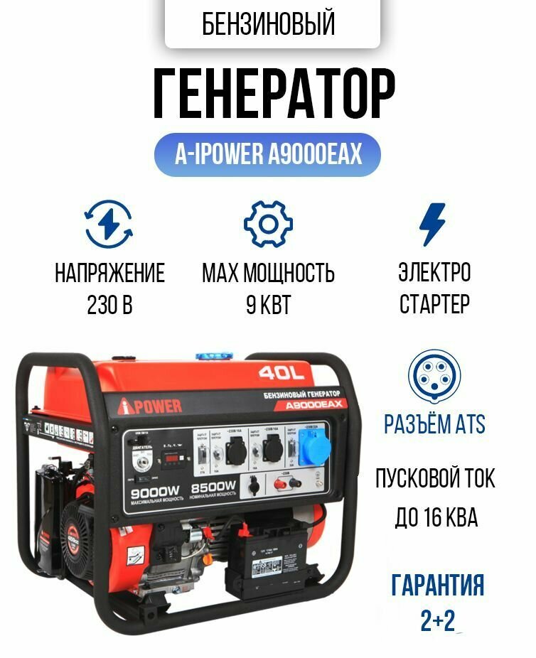Бензиновый генератор A-iPower A9000EAX + блок автозапуска A-iPower 400 В 25 А