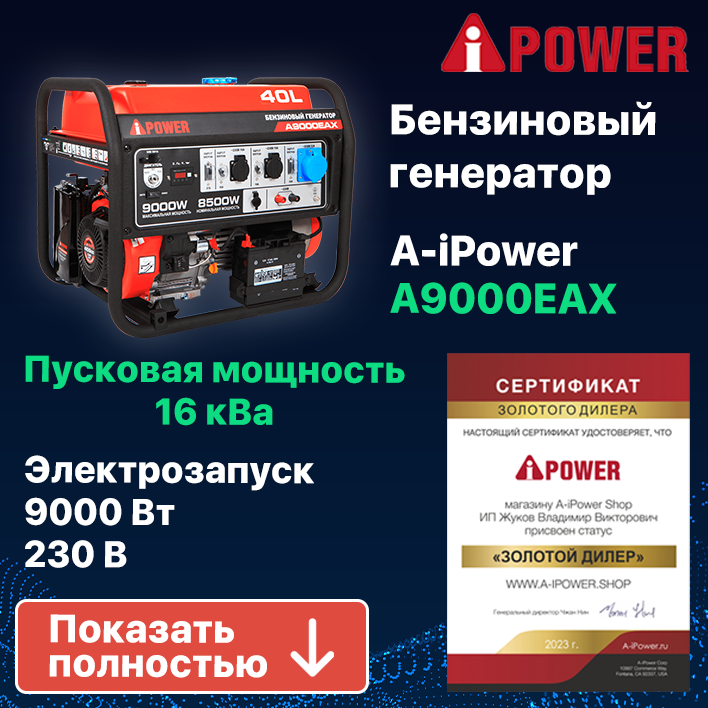 Бензиновый генератор A-iPower A9000EAX, (9000 Вт)