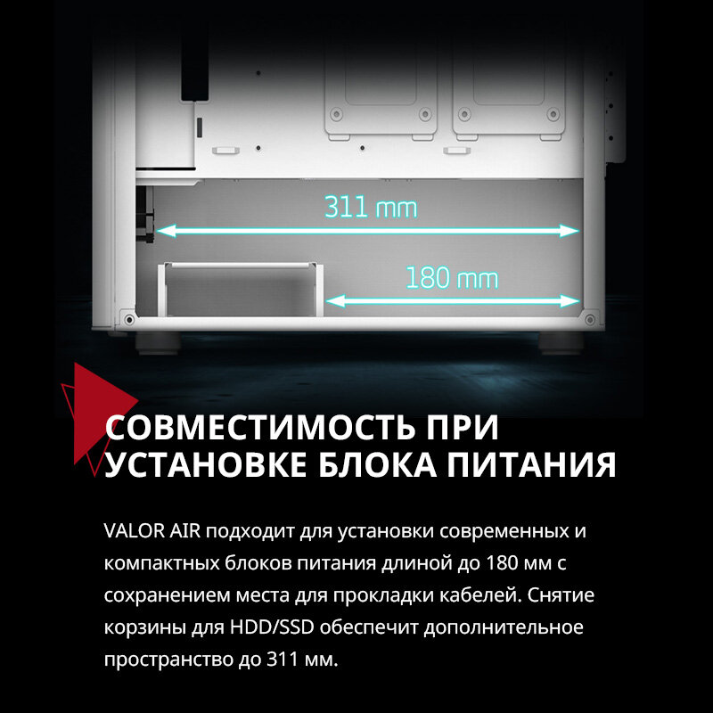 | Отзыв: | Для установки видеокарты длиной 335 придется убирать 1 из вентиляторов с передней стенки. Мне даже для карты на 302мм пришлось временно снимать вентилятор и возвращать его на место уже с картой - иначе карта не засовывается.