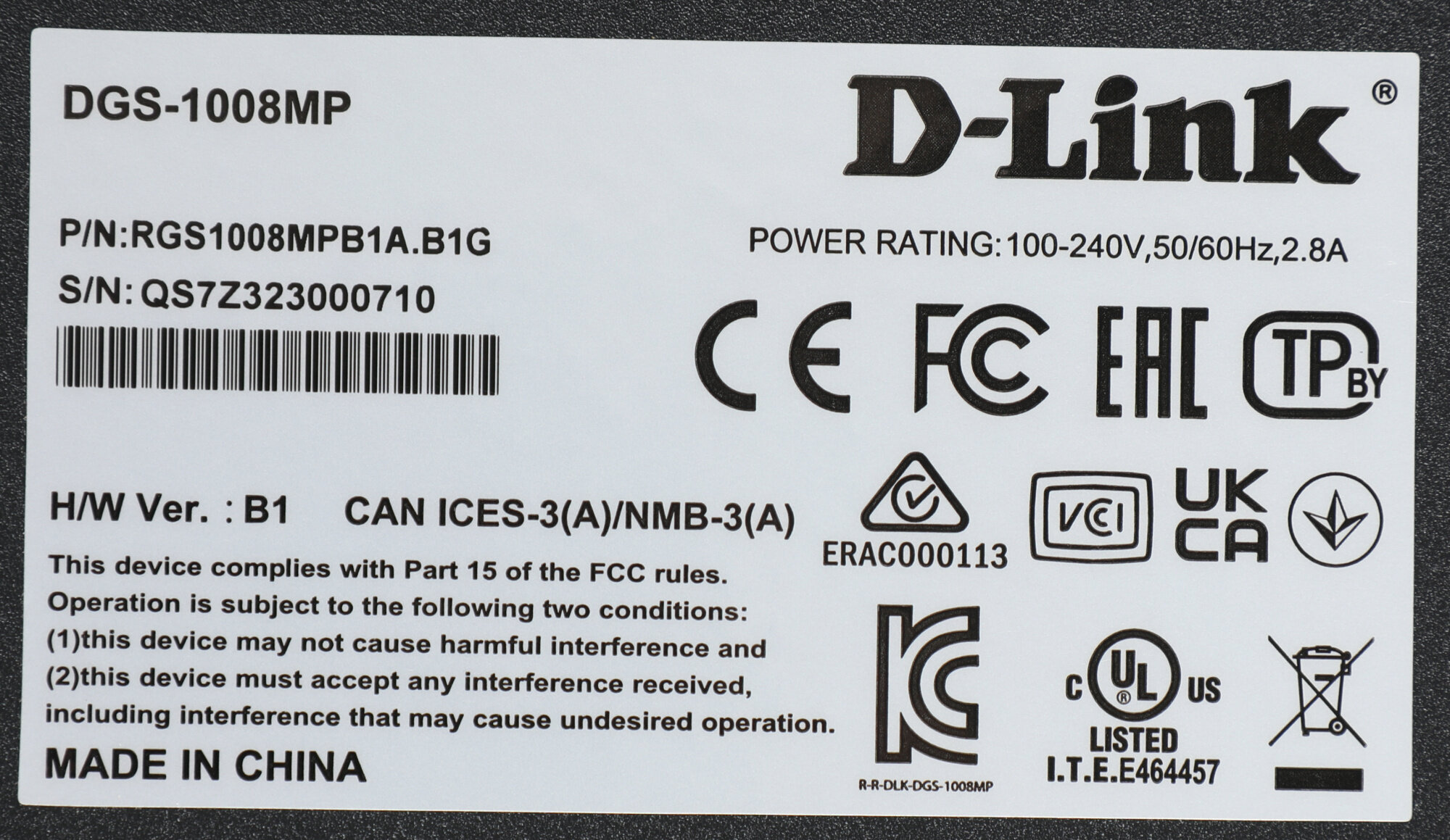 Коммутатор D-Link Dgs-1008mp/b1a QS7Z3J7000141 .