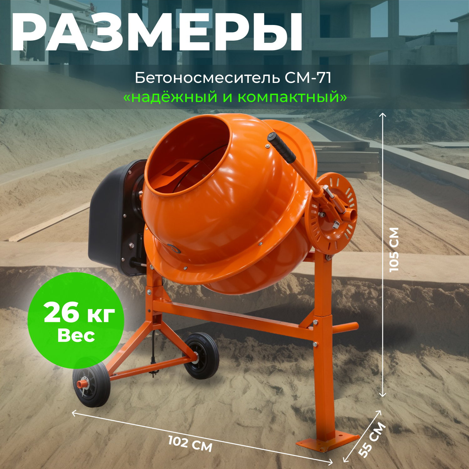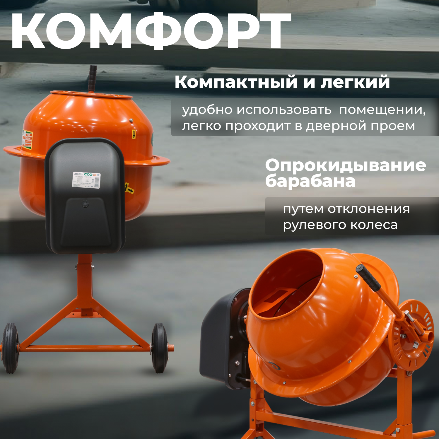 Бетономешалка ECO CM-71 (объем 70/50 л, 380 Вт, 230 В, вес 26 кг) (CM-71) интересное: