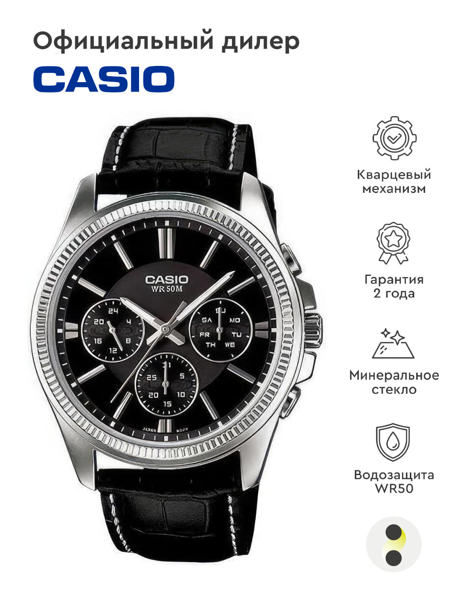 Мужские часы Casio MTP-1375L-1A c дополнительными функциями и водозащитой 50 метров