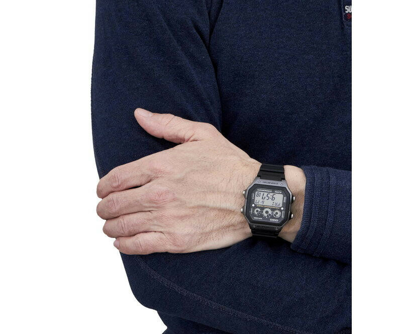 Наручные часы CASIO AE-1300WH-8A кварцевые, будильник, хронограф, секундомер, таймер обратного отсчета, подсветка дисплея, водонепроницаемые, черный