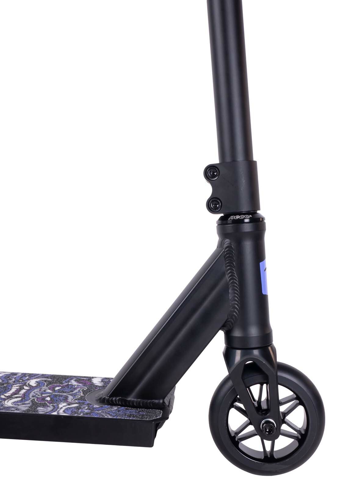 | Плюсы: | Высокий руль, широкая длинная дека!!! Длинные грипсы, при трюках они очень удобные. Для райдеров среднего уровня этот самокат самое то.