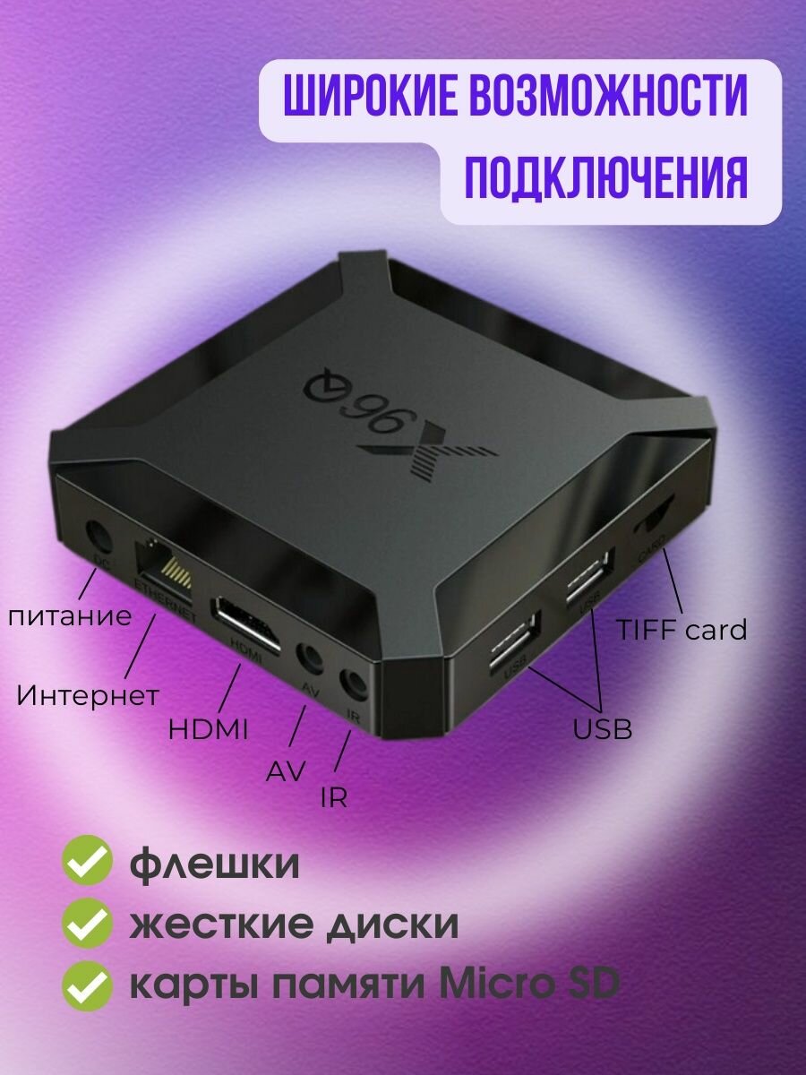 Смарт ТВ приставка, X96q Андроид 10, 2/16 Гб 4К tv box андроид приставка смарт приставка