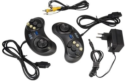 | Комплектация | Игровая приставка Sega - новый корпус (цвет черный) со встроенными 140 играми / 2 проводных джойстика (1,5 метра) / AV кабель / адаптер 5V / Руководство пользователя |