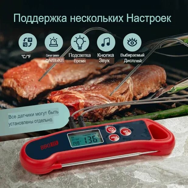 Кулинарный термометр INKBIRD BG-HH2P, 3 щупа интересное: