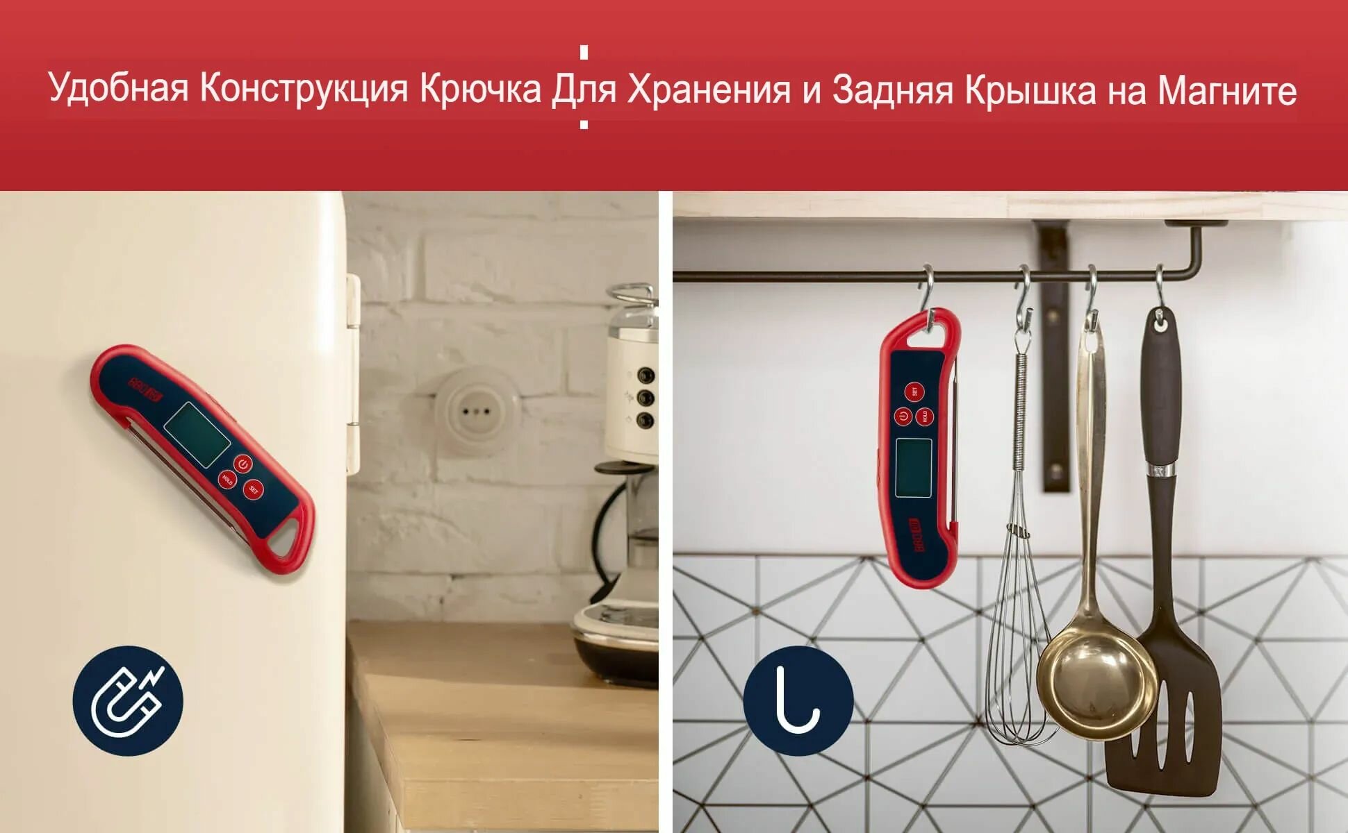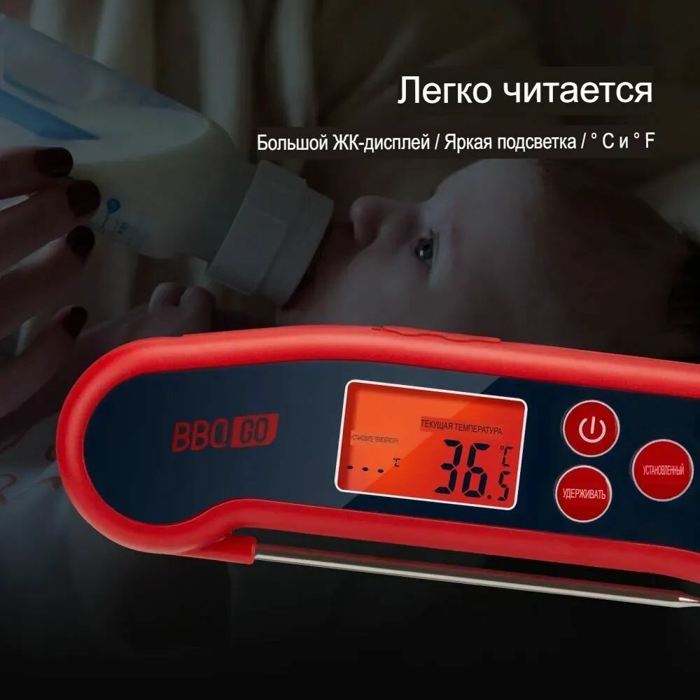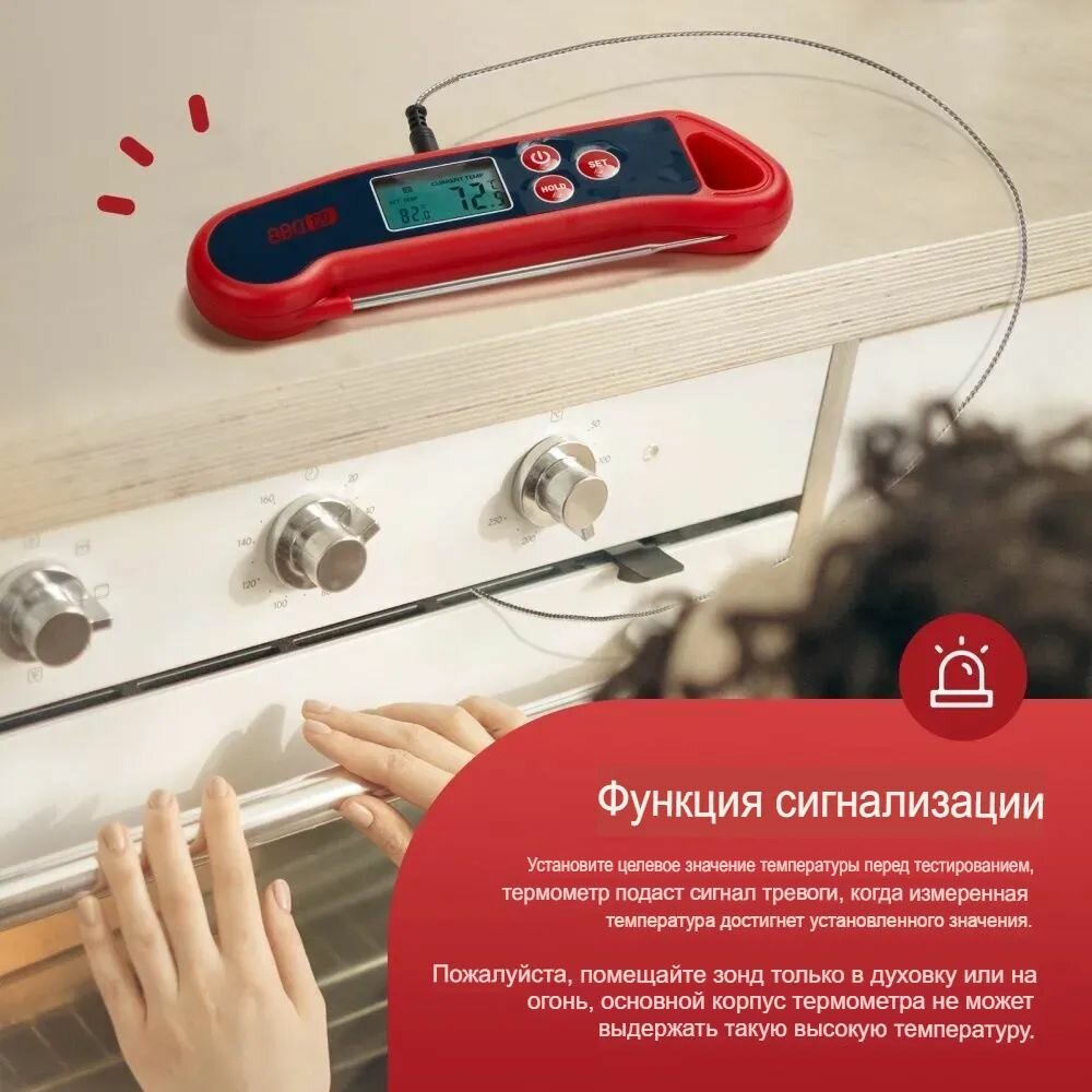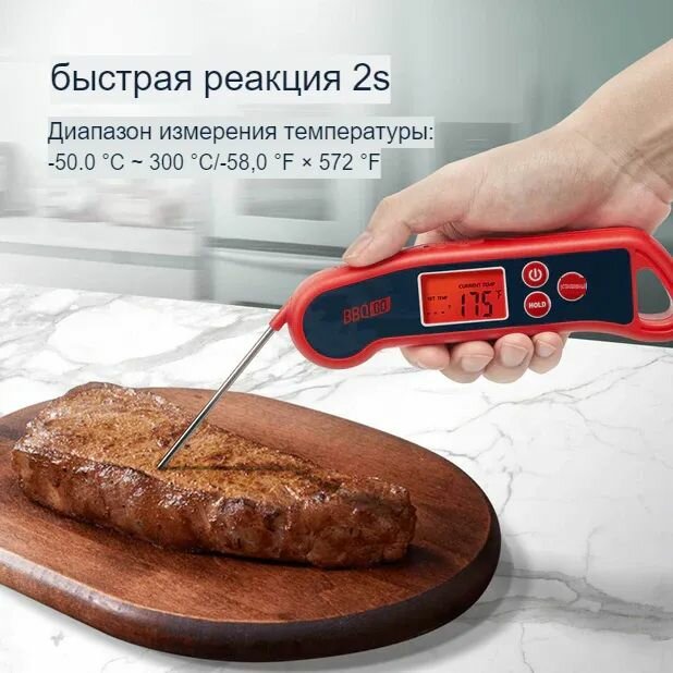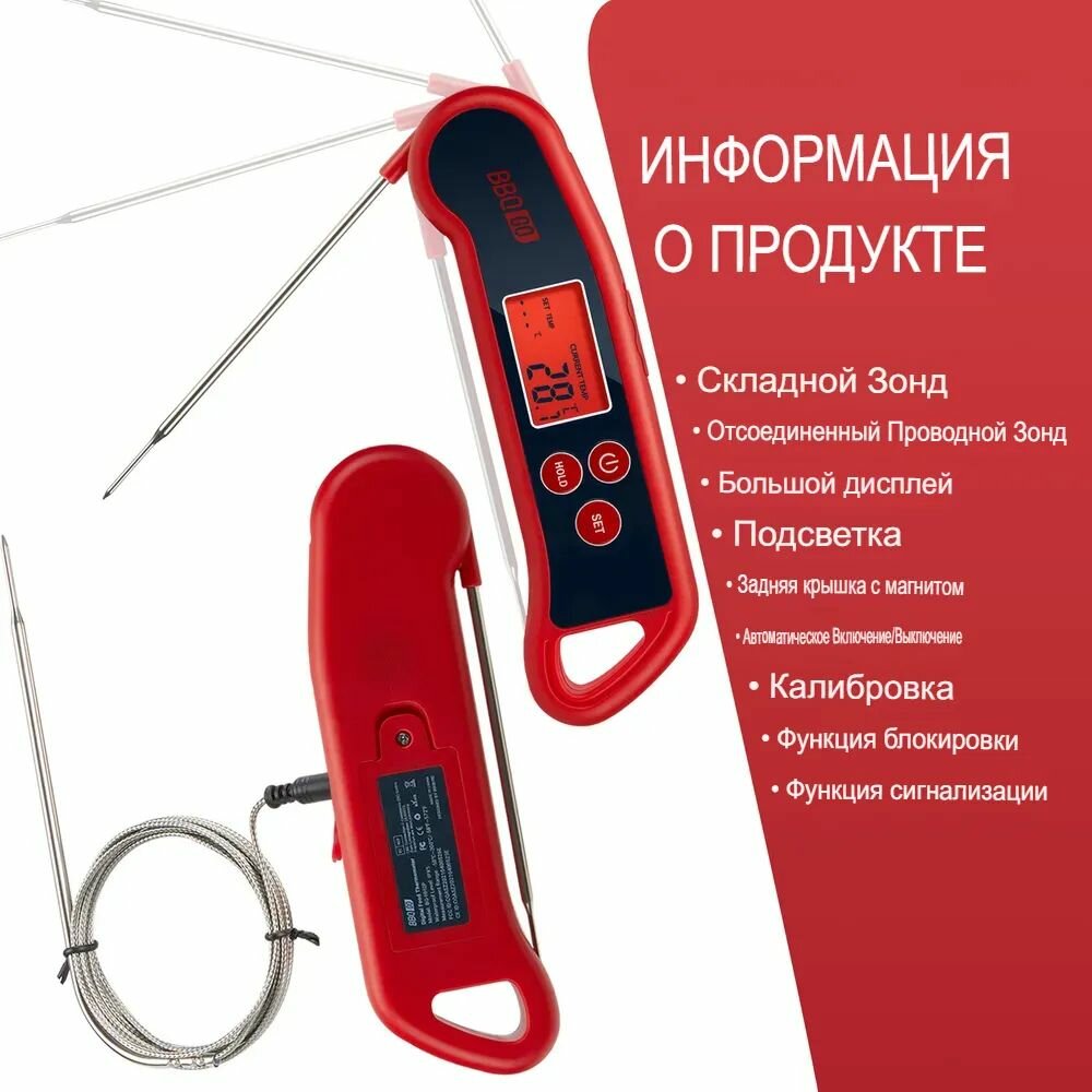 Кулинарный термометр электронный со щупом из нержавеющей стали, термометр для еды, мяса, вина, провод 1 метр / таймер кухонный