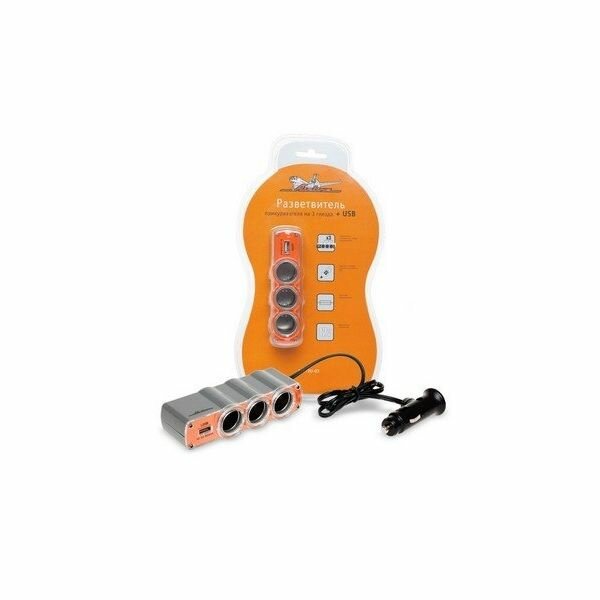 Прикуриватель-разветвитель 3 гнезда + USB (оранжевый) (ASP-3U-03) AIRLINE