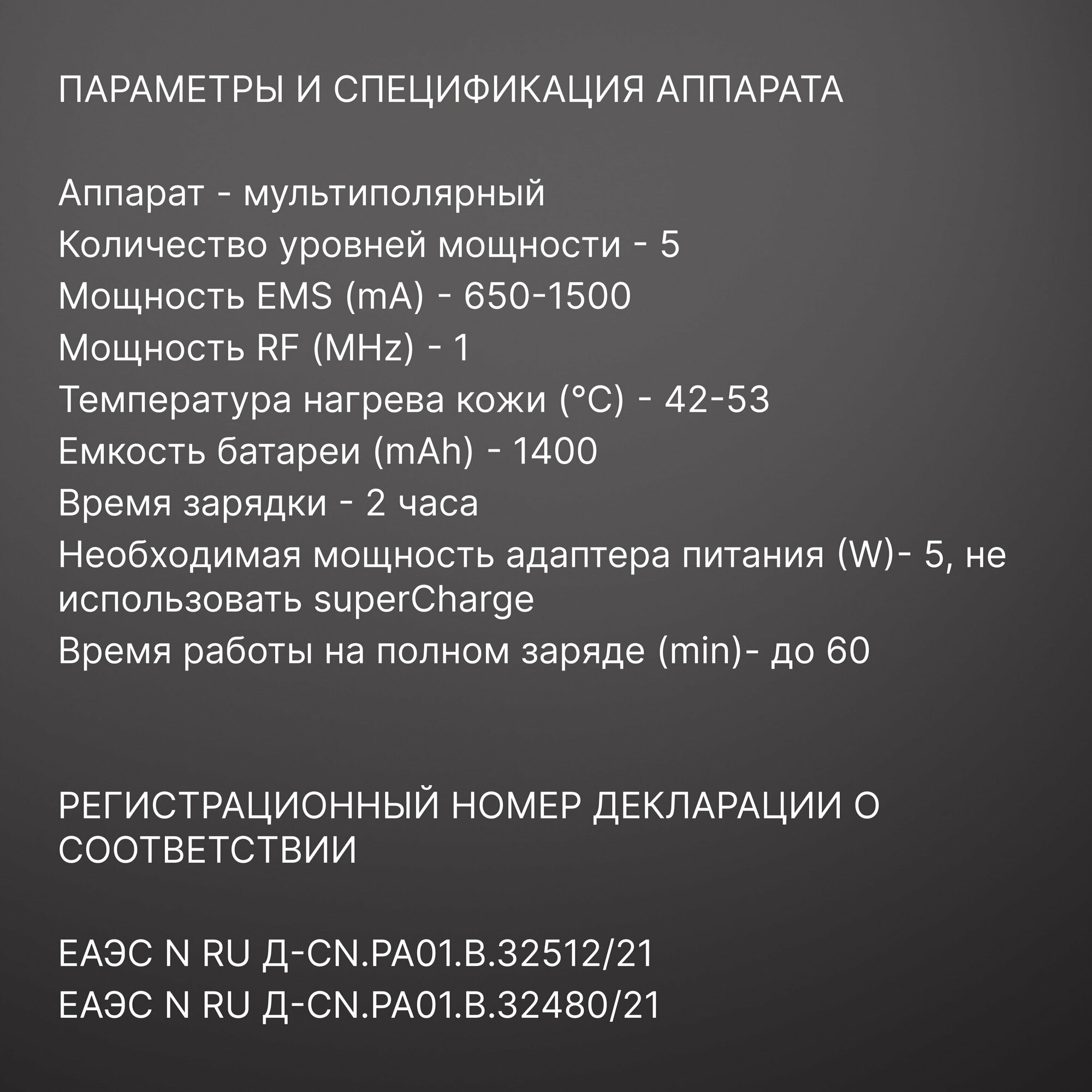 | Принцип работы | миостимуляция / RF-лифтинг / вибрация / светотерапия |