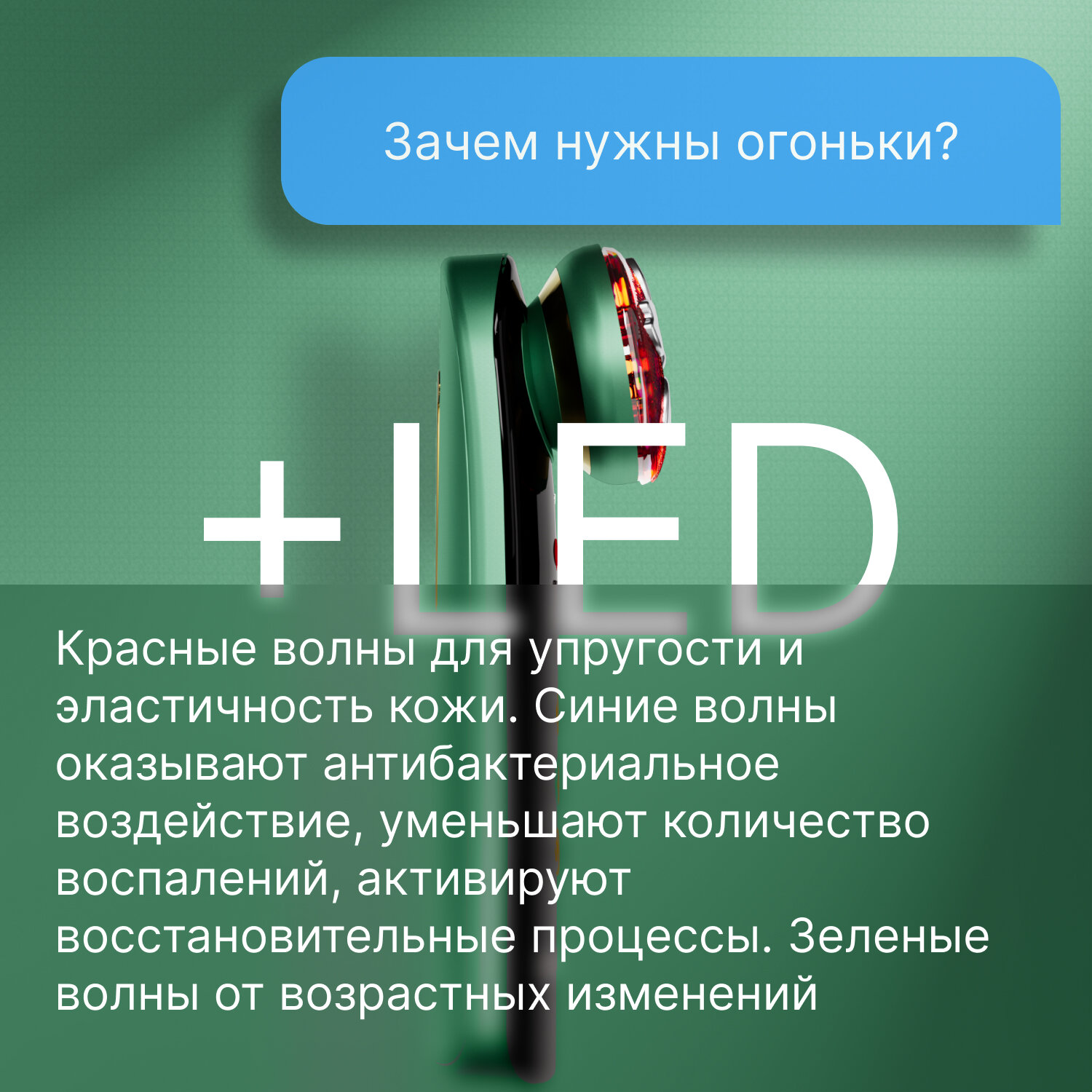Косметический аппарат. Массажер для лица, шеи. RF лифтинг. EMS. Электромиостимуляция. LED терапия. Зелёный интересное: