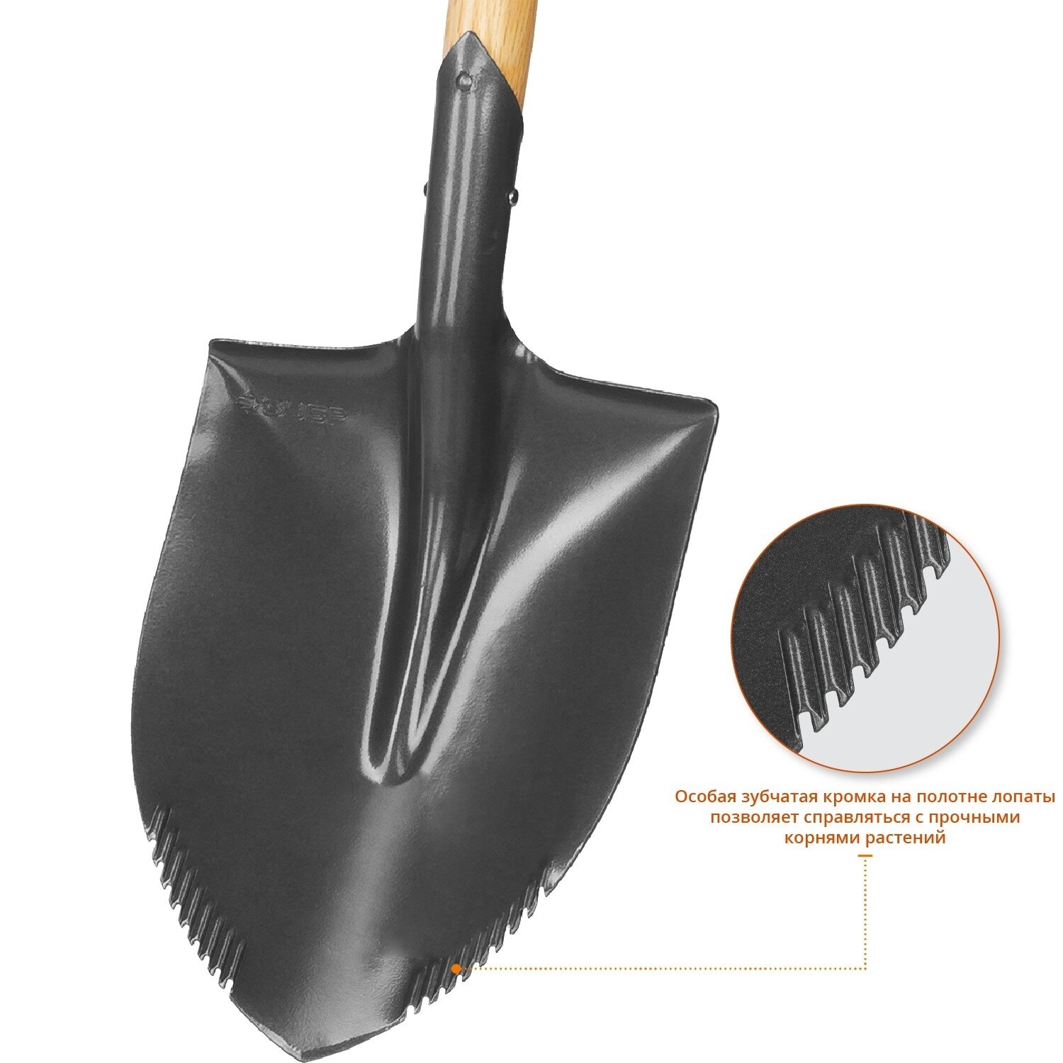ЗУБР Беркут, 228х173х800мм, полотно 1.6мм с зубцами, закалено, дерев.черенок высш. сорт с рукояткой, автомобильная лопата, профессионал(4-39506)