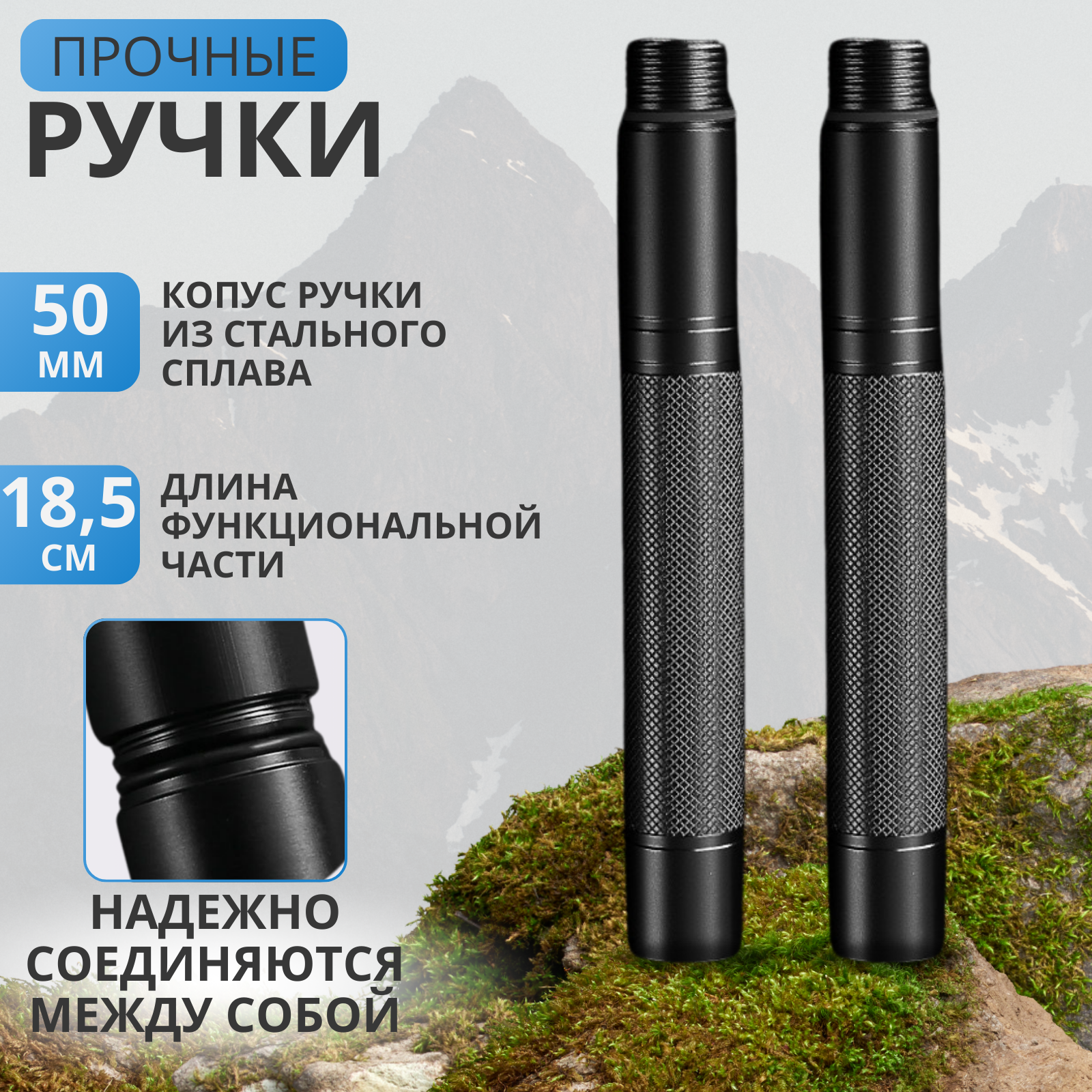 | Минусы: | не понятно, как закрепить нож в нерабочем состоянии в рукоятке, несъемная первая секция на лопатке |