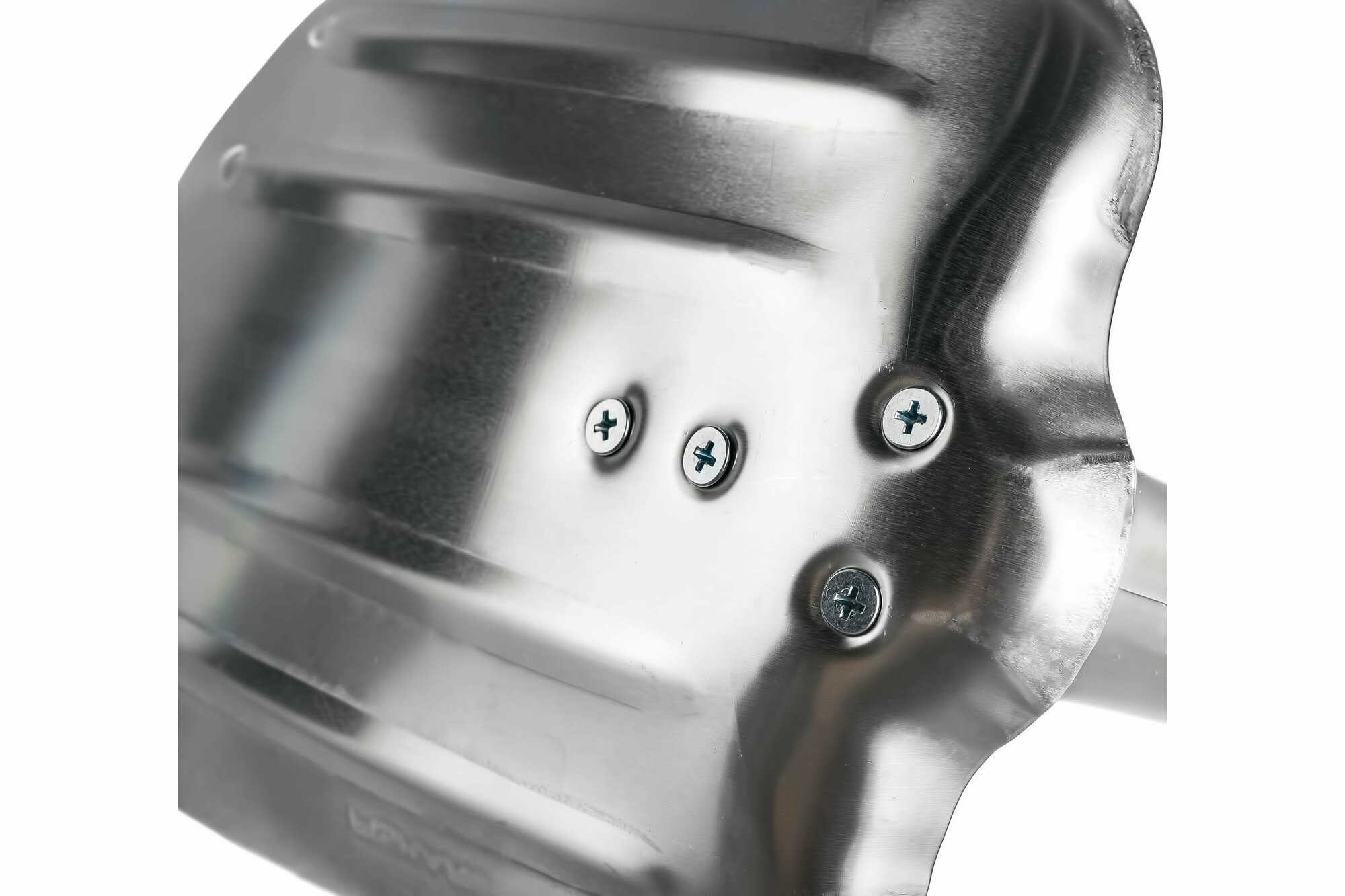 Крепление лопаты к черенку на винтах. Можно было бы посадить на клёпки. Зачем делать набалдашник черенка как у бейсбольной биты? Толку при работе мало, а лишние вопросы при виде торчащей ручки, при досмотре машины ГАИшниками - утомили. |