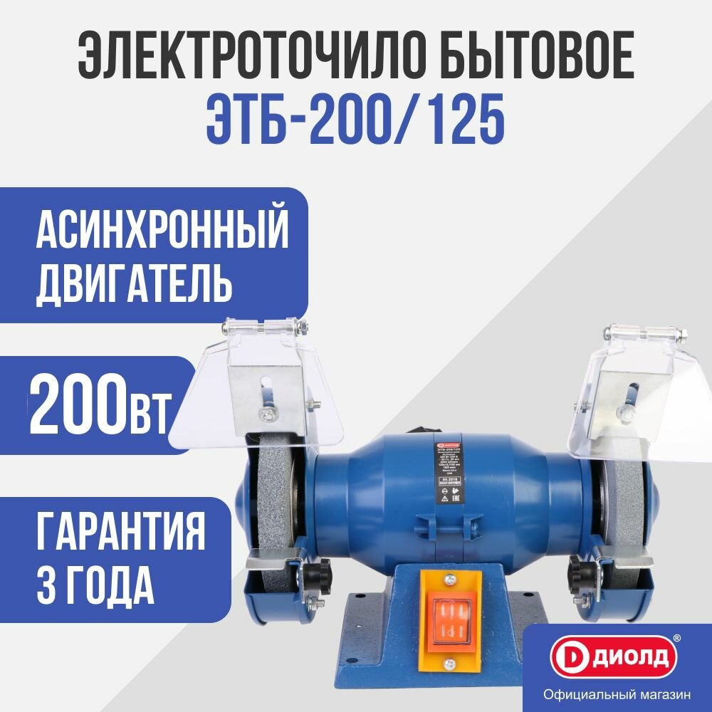 Электроточило диолд ЭТБ-200/125 / точильный станок, 200 Вт, 2950 об/мин