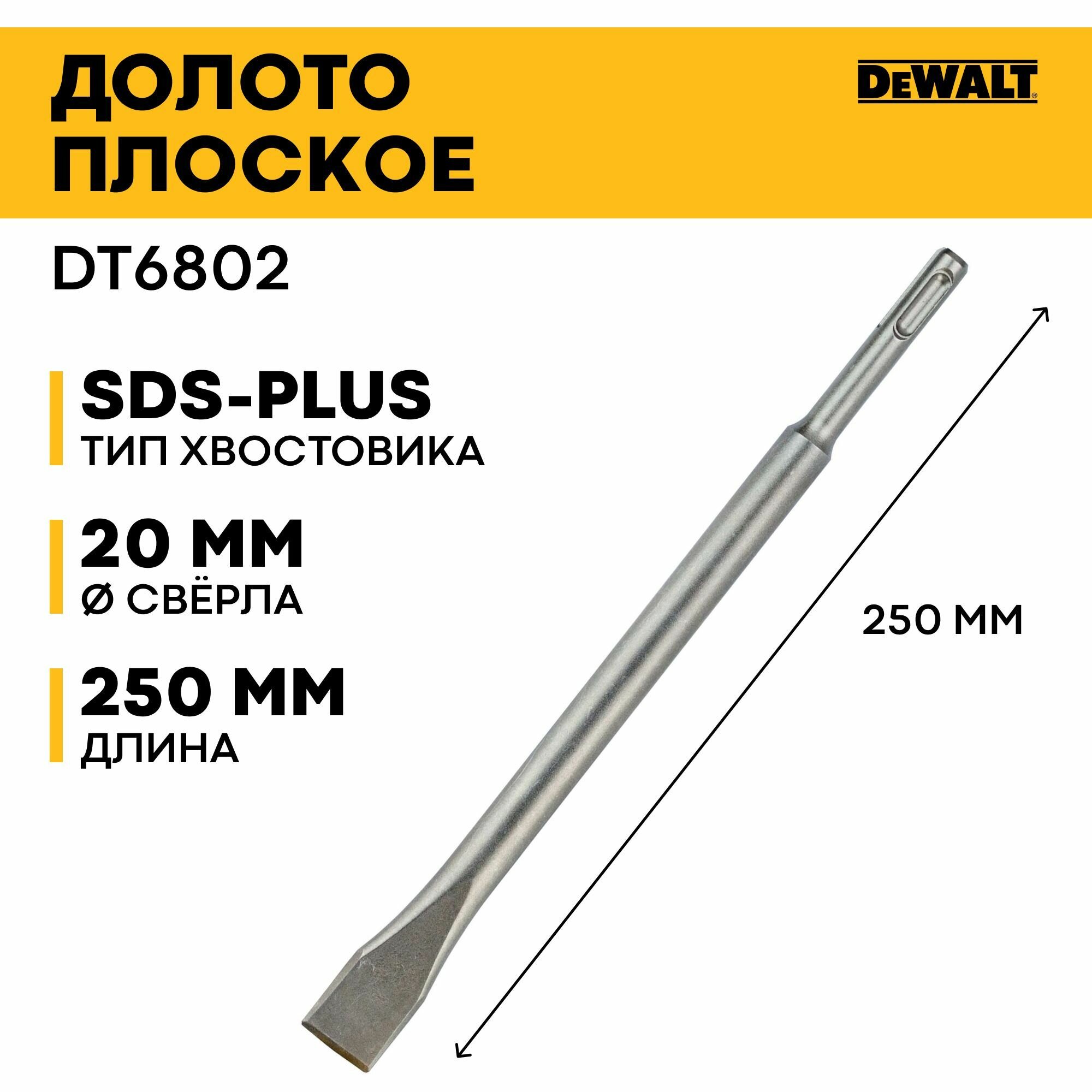 Зубило плоское DEWALT DT6802, SDS+, (250 x 20 мм)