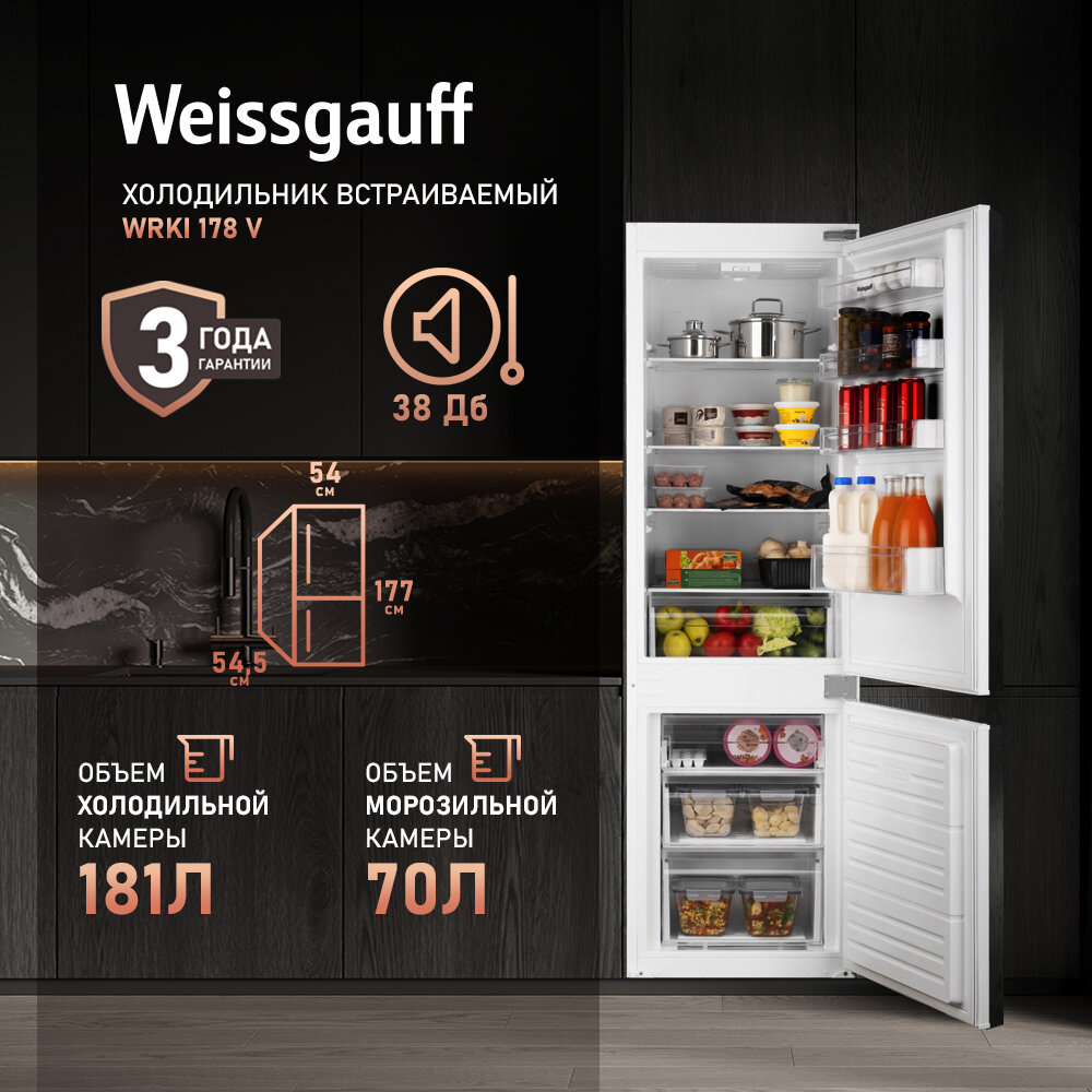 Двухкамерный встраиваемый холодильник Weissgauff Wrki 178 V