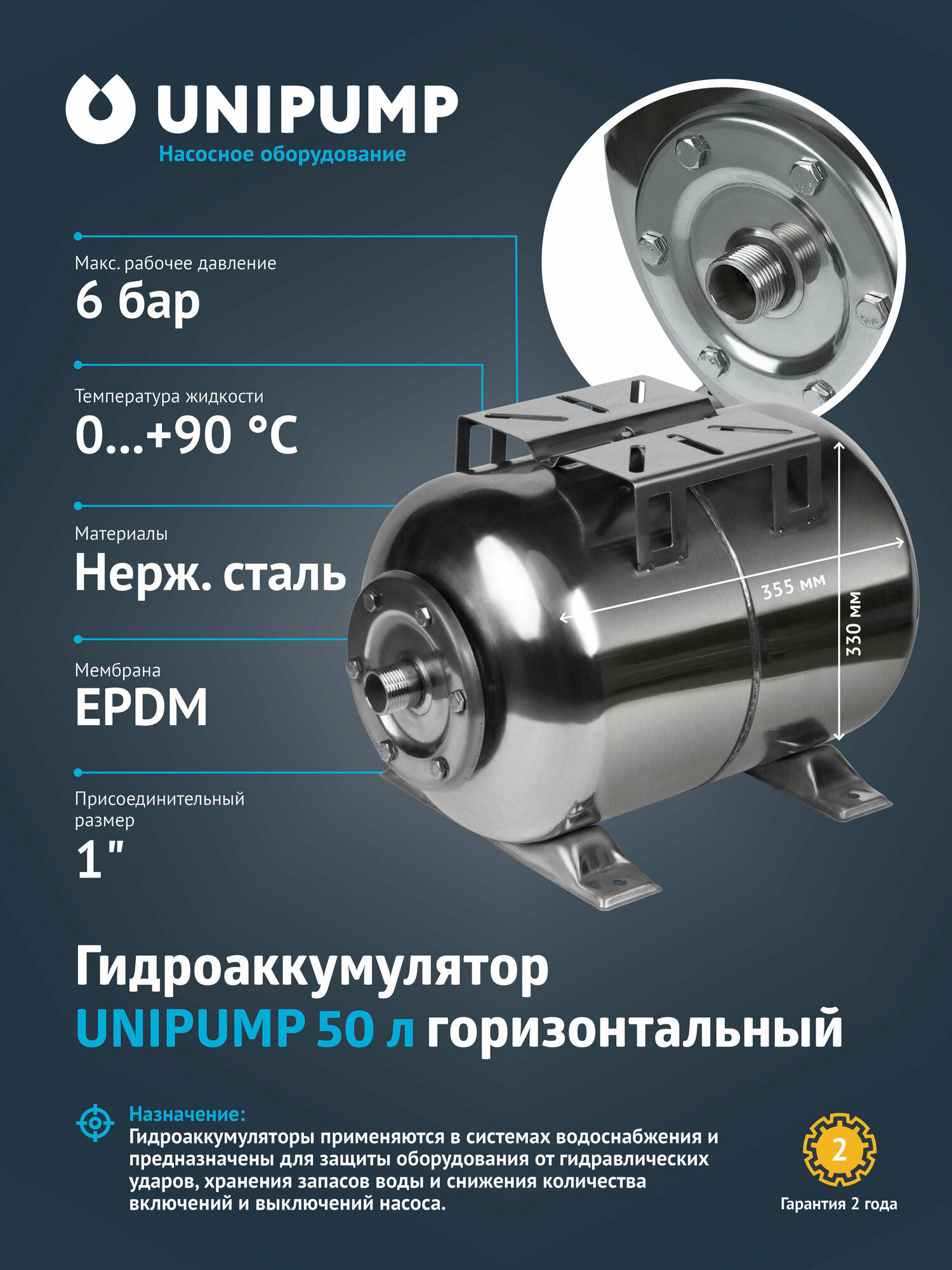 Гидроаккумулятор 50 Г, нержавейка UNIPUMP