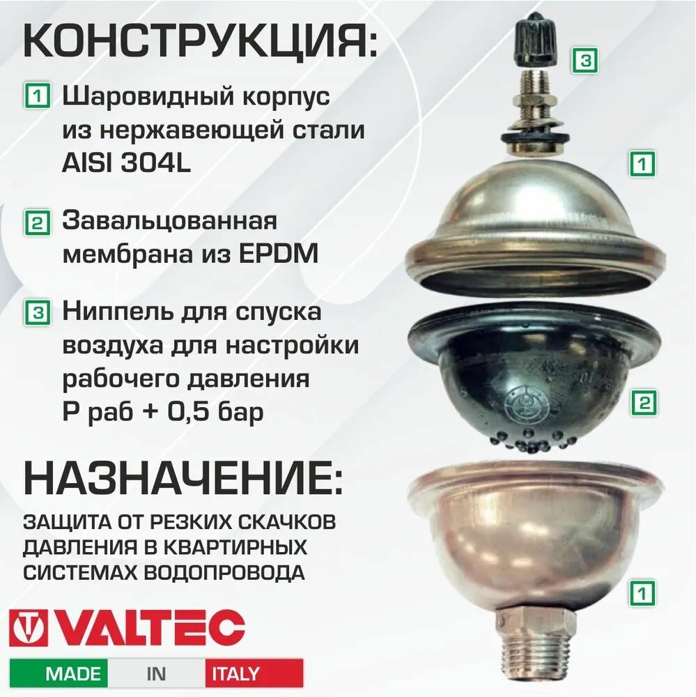 Гаситель / компенсатор гидроударов мембранный квартирный ITALY VT.CAR19.I.04001 интересное:
