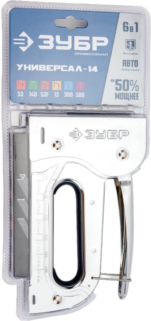 ЗУБР Универсал-14 степлер стальной 6-в-1: 53, 140, 53F, 13, 300, 500 31527