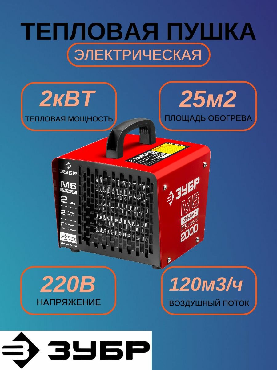 Пушка тепловая М5-Керамо, ЗУБР ЗТП-М5-2000, 220В