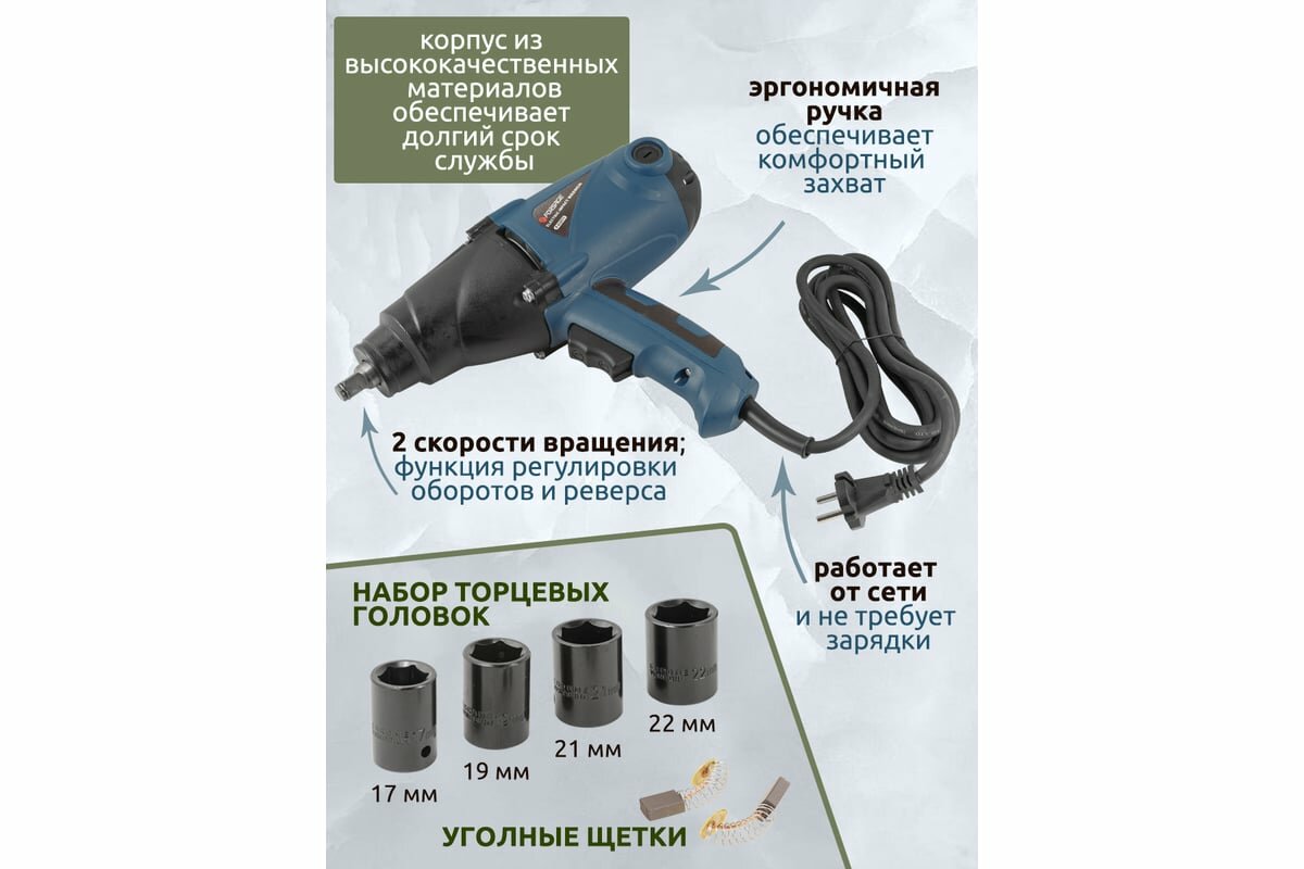 Гайковерт Электрический Ударный В Комплекте Со Сменными Головками 17, 19, 21, 22Мм 1/2 Inch(220V, 1010W, 0-2200 Об/Мин, 450 Н... интересное: