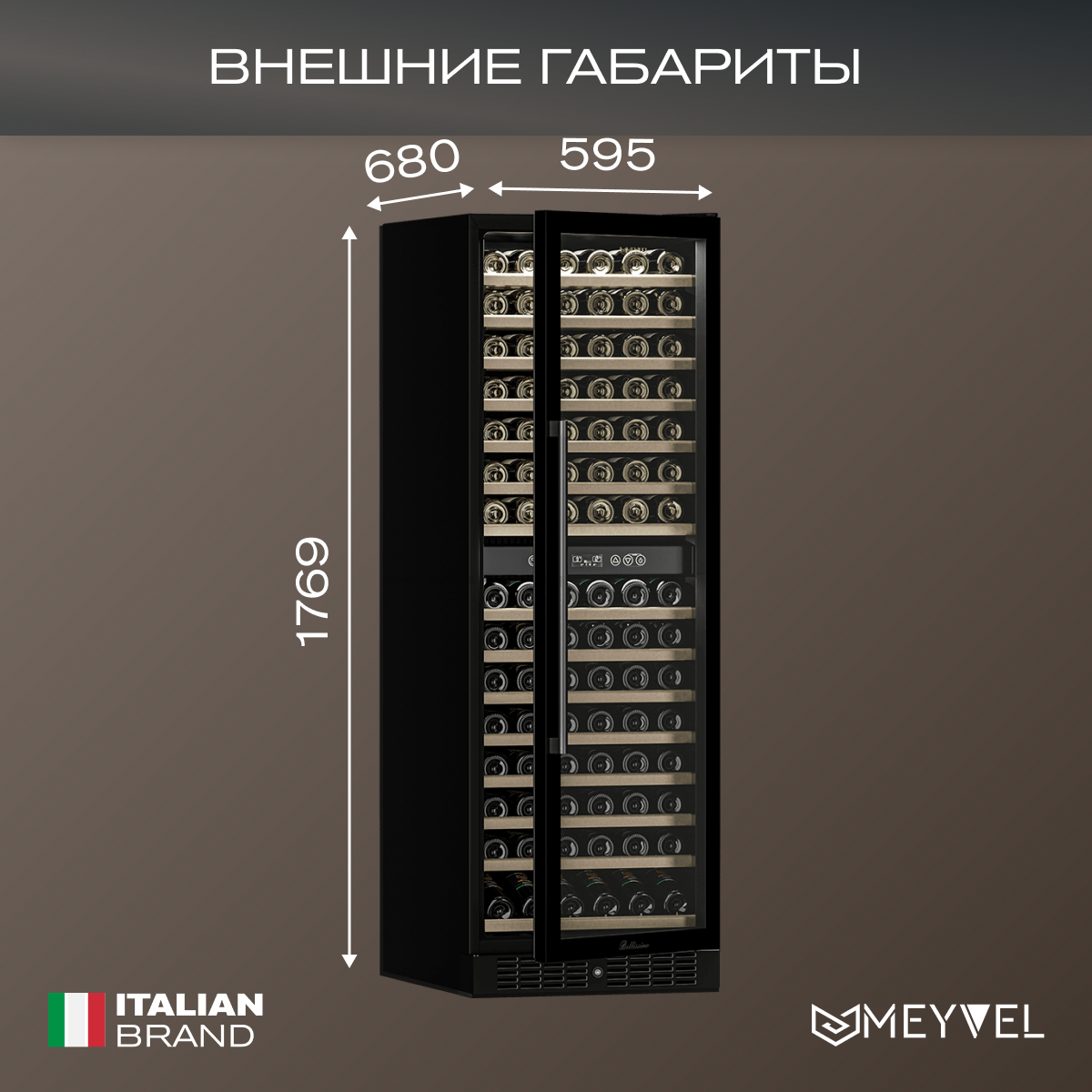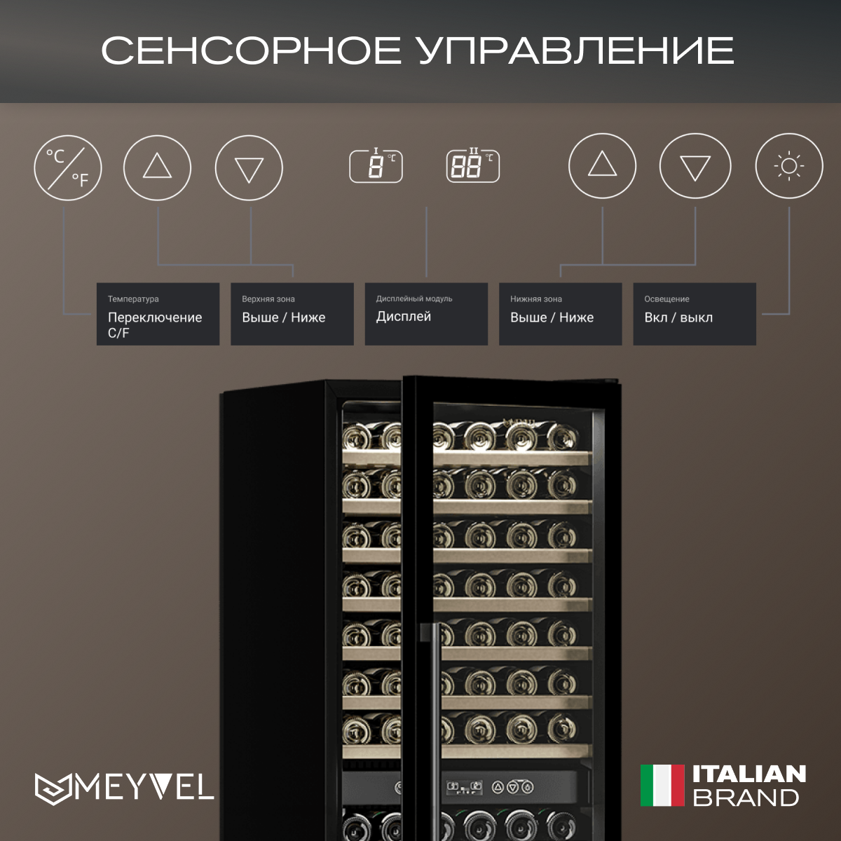 Винный холодильный шкаф Meyvel MV160-KBT2 компрессорный (встраиваемый / отдельностоящий холодильник для вина на 160 бутылок) интересное: