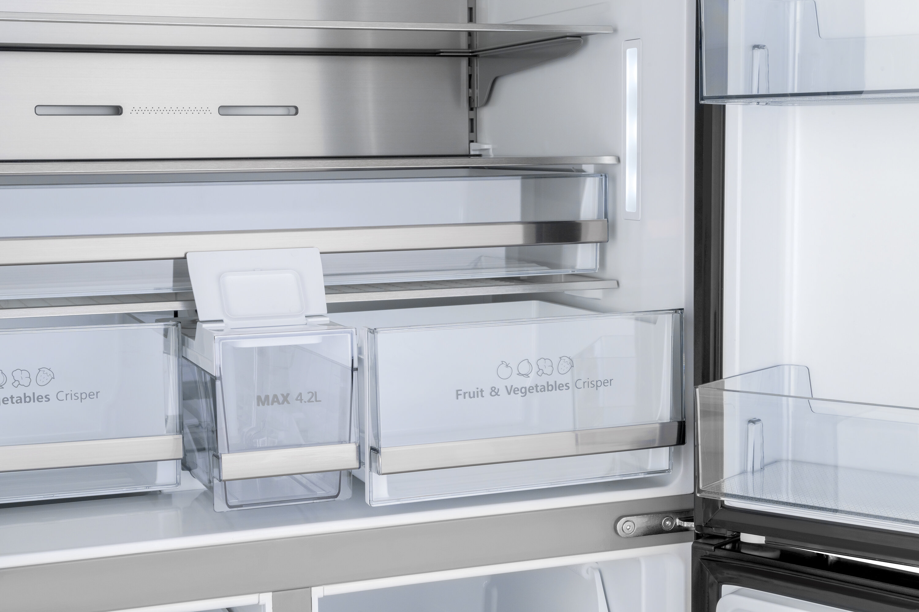 Диспенсер для воды и 2 видов льда очень кстати для больших компаний и тех кто любит виски или коктейли Подключение без стационарной подводки ( внутри контейнер органично вписан на 4,2 л ) что позволяет ставить куда угодно холодильник и не думать как подвести воду И самая на мой взгляд главная фишка это что он 3 зонный ( на двери регулятора температуры для холодильной камеры это 2 верхние двери от +2 до + 8 морозильная камера левая нижняя от -14 до -24 и 3 это камера от +5 до -20 Что позволяет ее использовать по надобности как холодильник, как морозильник или же как зону 0 Это очень круто я получил зону биофреш с нулевой температурой почти 100 литров !!!!!! Икра краб стейки рыбы и мяса супер просто сохраняет свежими больше нежели!!!! Я в диком восторге Очень рекомендую. До этого были 2 известных немецких Бренда лидеры холодков ( бо… и либх… ) не могу писать названия отзыв не пропускают. Точно могу сказать что этот холодильник по уровню как серия monolit у libh…r только стоит в 6 раз дешевле Рекомендую тем у кого большая кухня или загородный дом Если ставить в нишу обязательно надо делать более 98 см иначе как у меня не открываются двери чтобы вытащить ящики ( пришлось расширять нишу поморочиться, но оно того стоило ) |