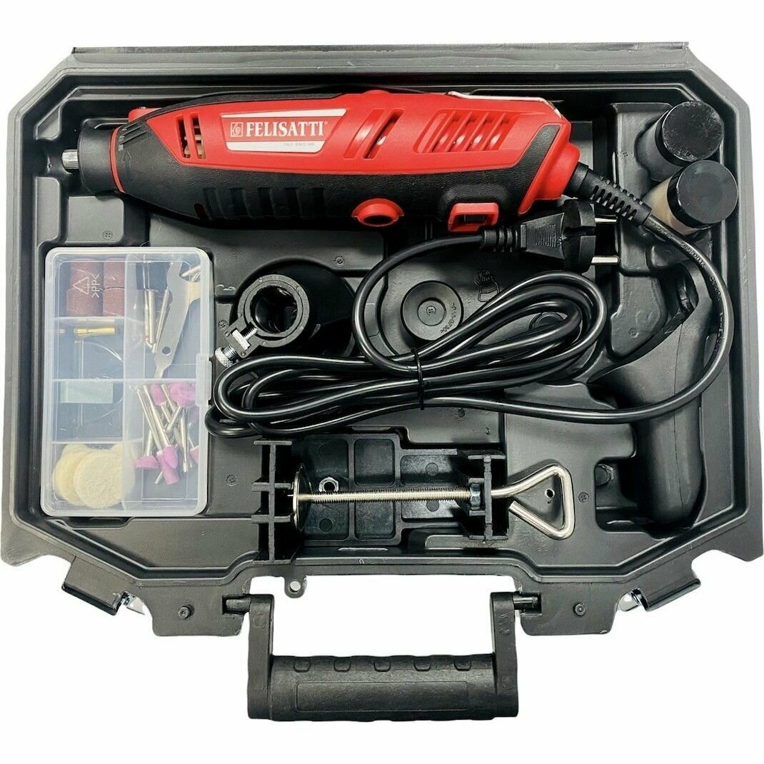 Прямая шлифмашина FELISATTI МШМ-200Э(MG7008) 807.5.1.00 в кейсе + 100 аксессуаров