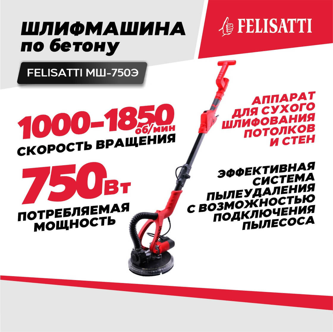 Машина шлифовальная Felisatti МШ-750Э для стен и потолков