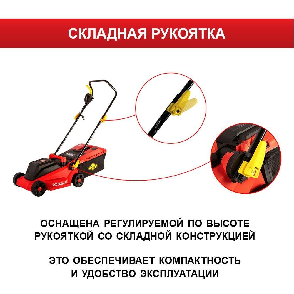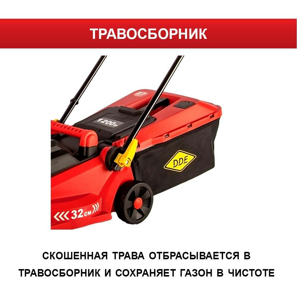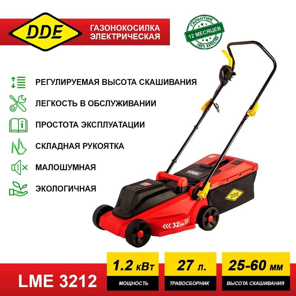 Газонокосилка электрическая DDE LME 3212 (1200 Вт, травосборник 27 л, 8,7кг ширина скашивания 32 см, высота скашивания 25-60 мм)