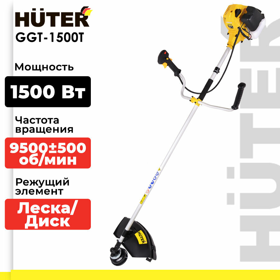Бензиновый триммер GGT-1500T Huter - цельная штанга - ( 1500 Вт; 9500 об/мин; ширина скоса ножом 25,5 см, леской 46 см)