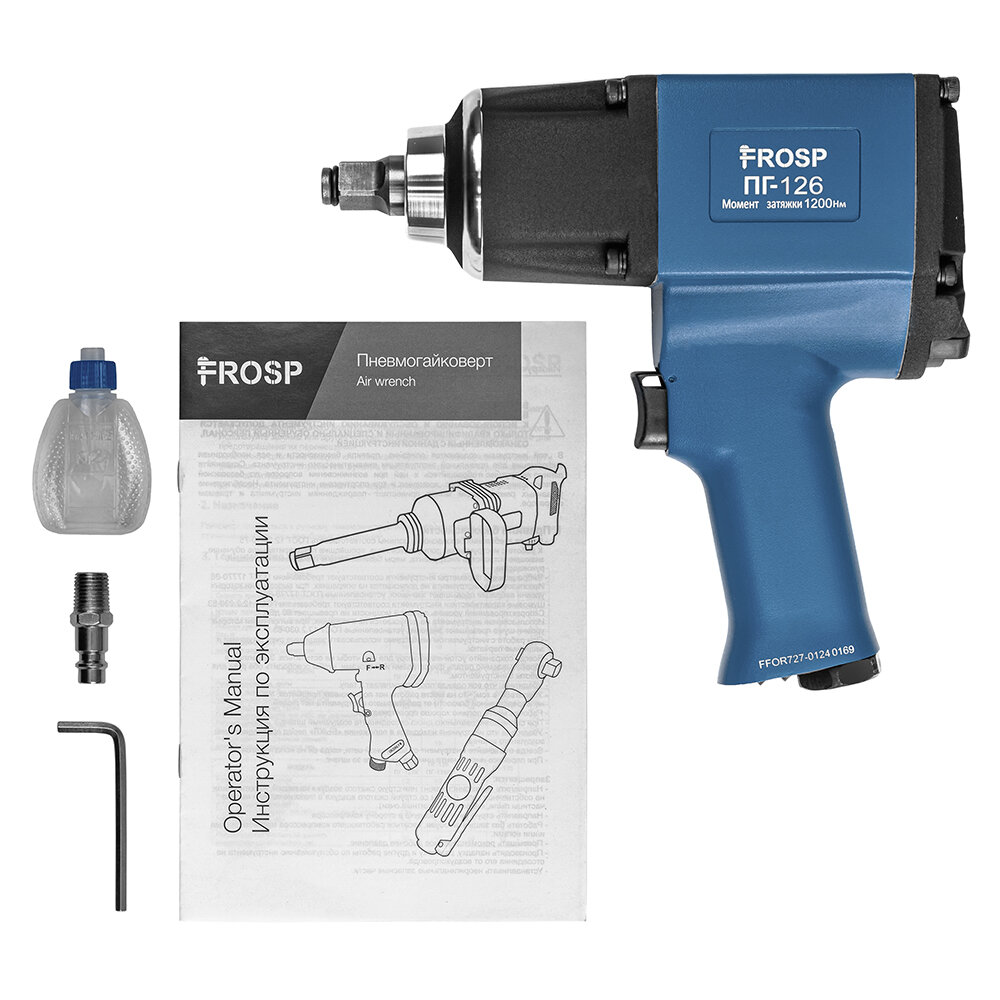 Ударный гайковерт пневматический 1200 Нм FROSP ПГ-126 1/2" с реверсом для легкового автомобиля