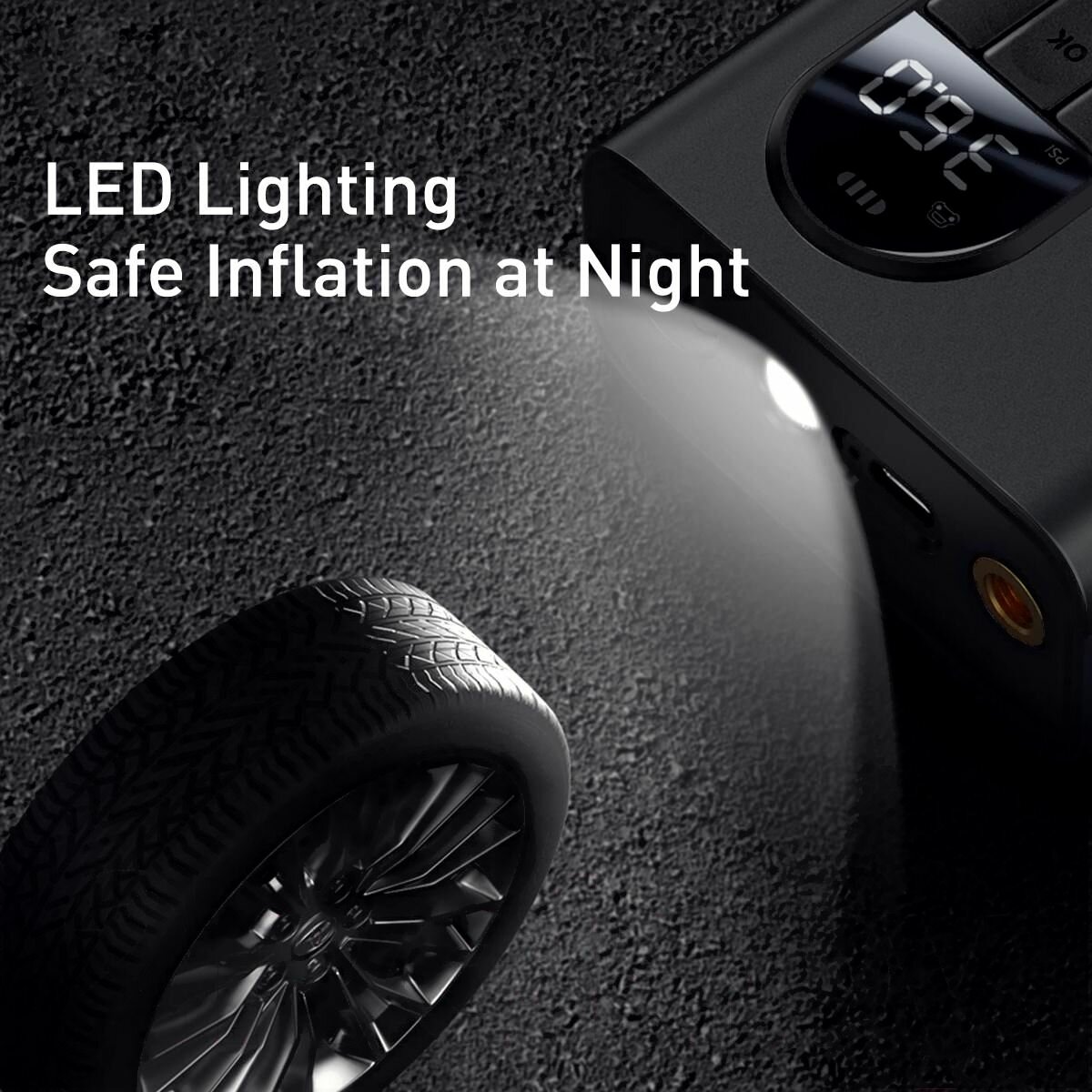 Портативный насос для авто/велосипеда/мячей Baseus Energy Source Inflator Pump, 2000 mAh, Черный