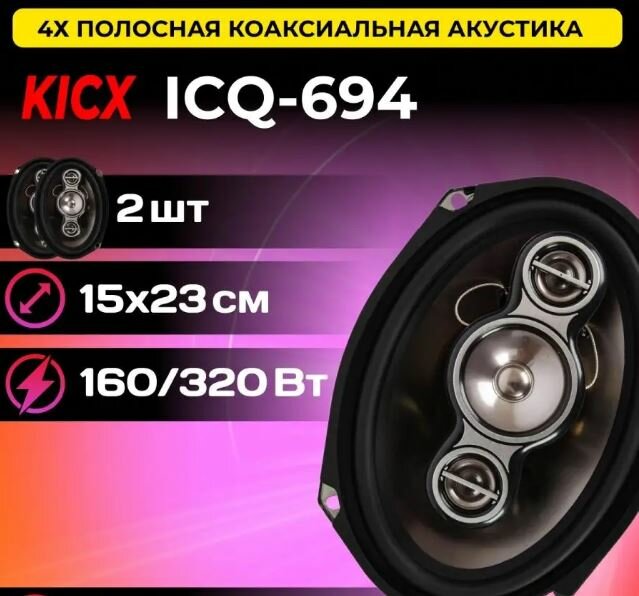 Автомобильные динамики Kicx ICQ 694 - 4-полосная коаксиальная акустическая система интересное: