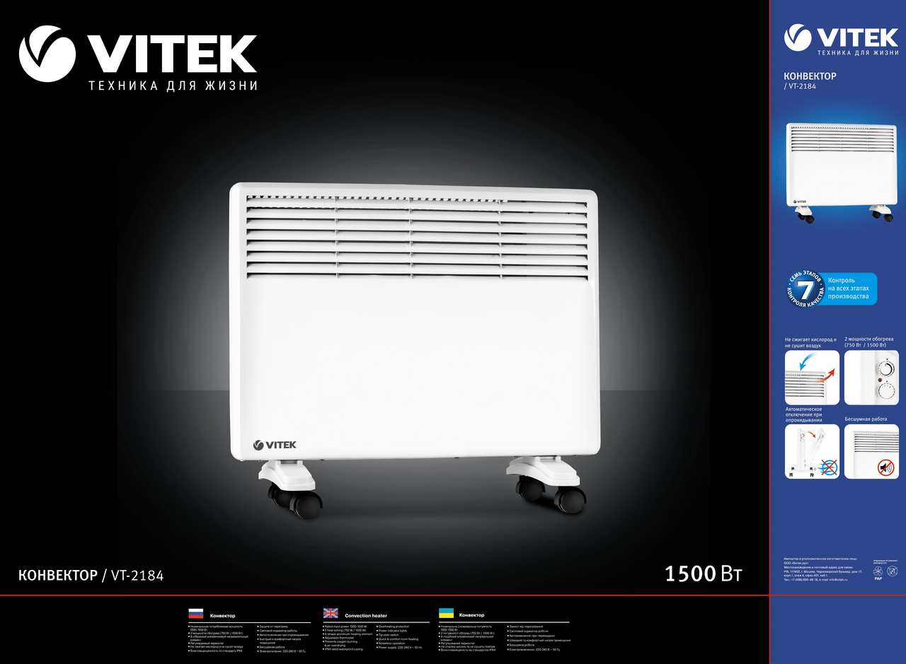 Купить Конвектор VITEK VT-2184, 1.5 кВт, 20 м², колеса в комплекте, белый