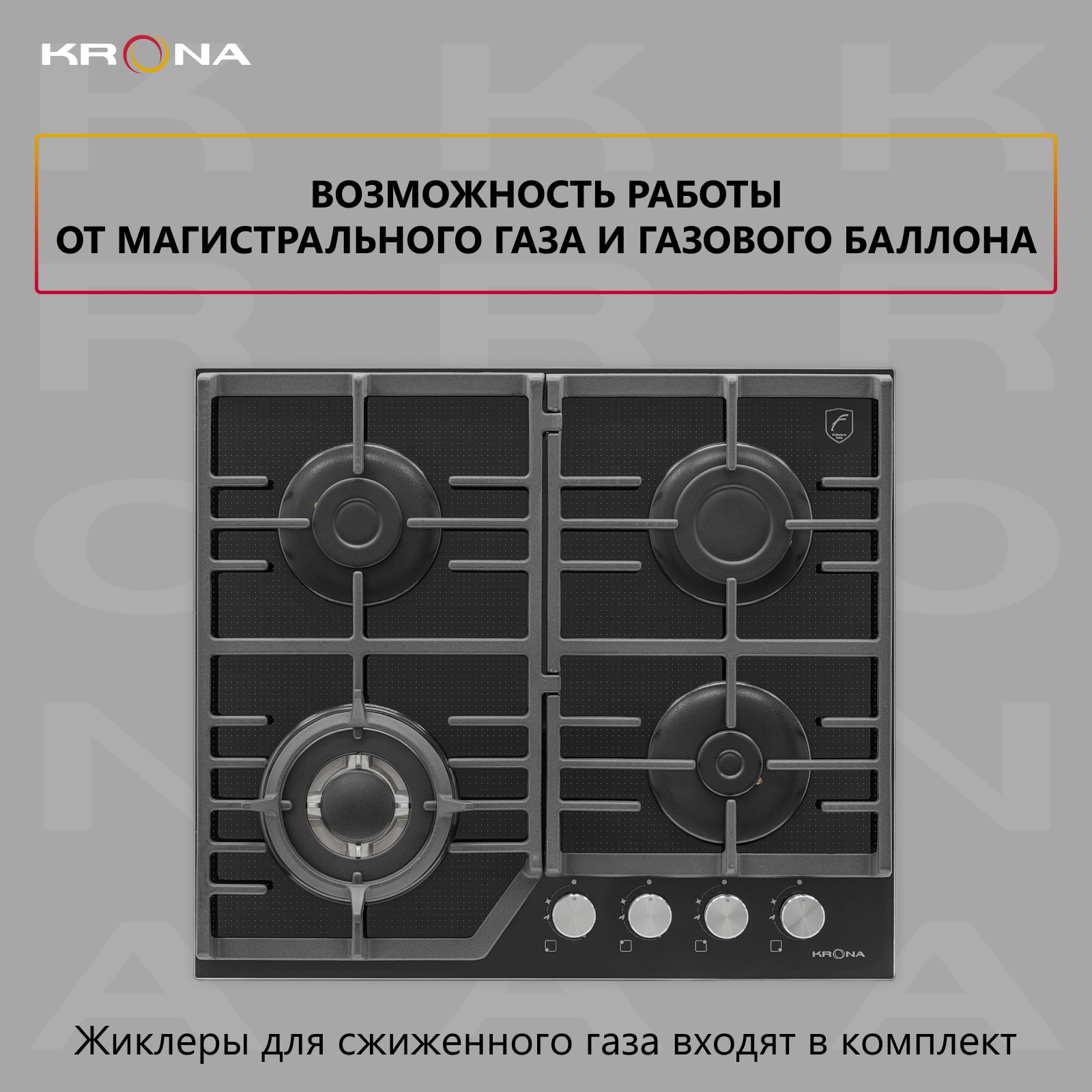 Варочная поверхность KRONA ARDENTE 60 BL встраиваемая газовая черная