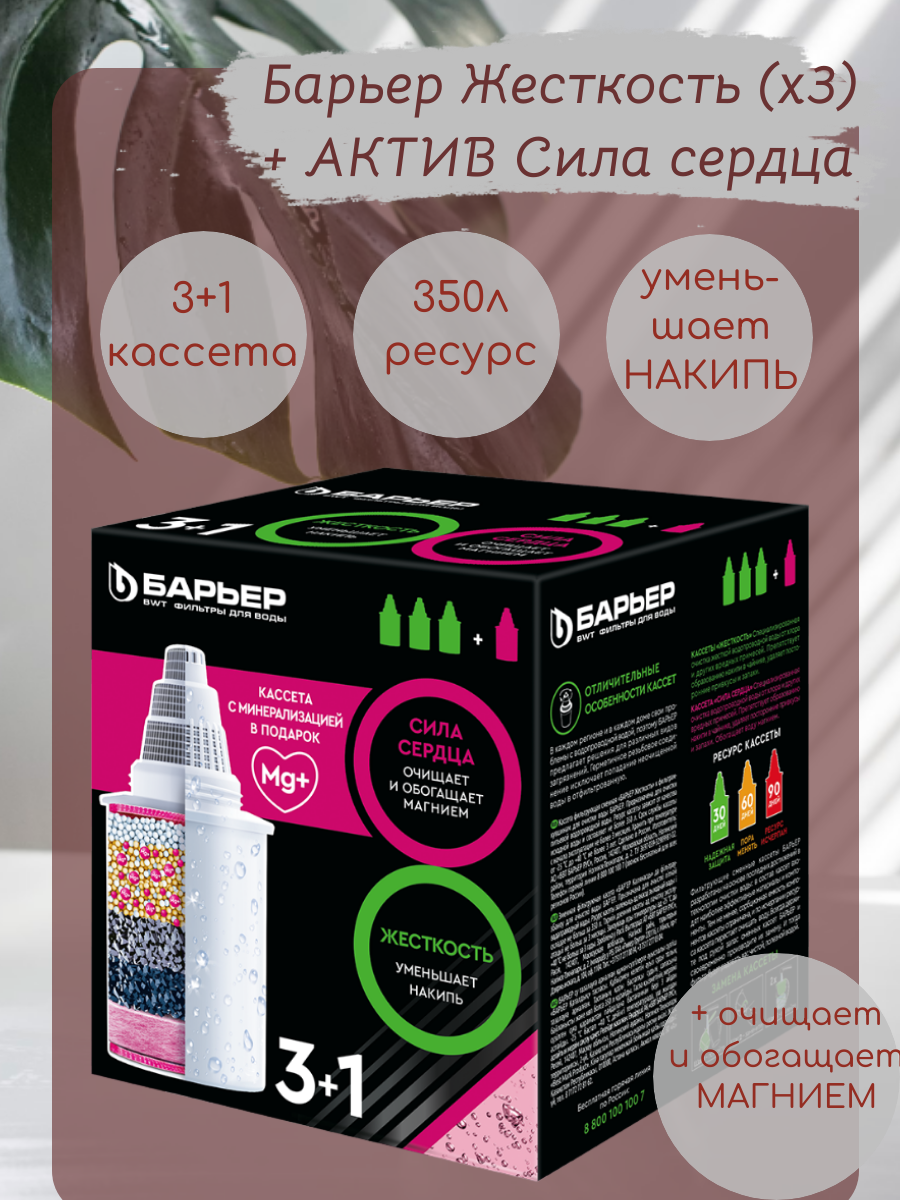 Комплект картриджей-кассет БАРЬЕР Жесткость, 3 шт + БАРЬЕР актив Сила Сердца, 1шт
