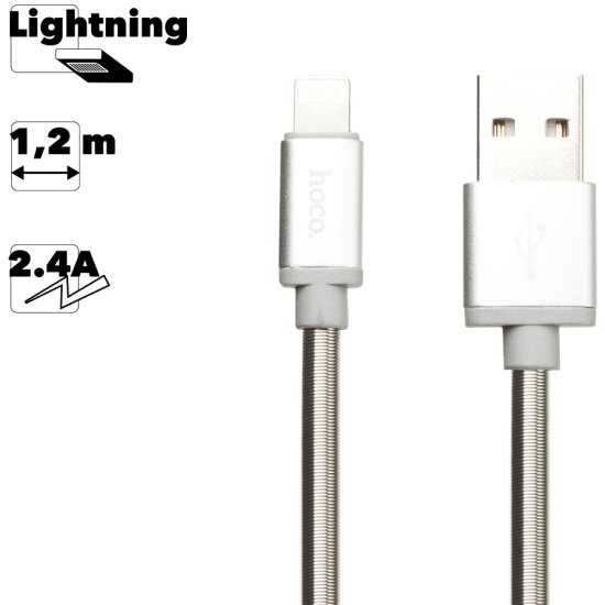 Кабель HOCO USB U5 Full Metal Lightning 8-pin, 1.2м, 2.4A, сталь (серебряный) интересное: