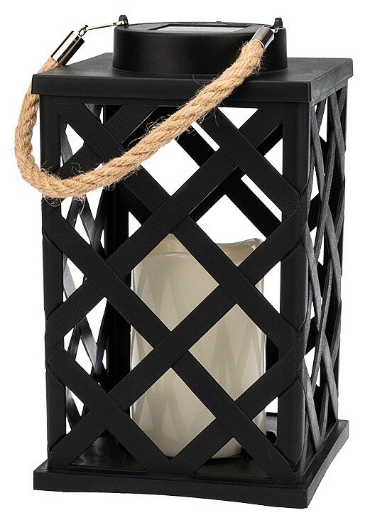 Neon-Night Декоративный фонарь на солнечной батарее 14х14х24 см, черный резной корпус, теплый белый цвет свечения NEON-NIGHT
