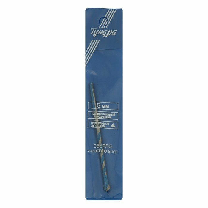 Сверло универсальное тундра, твердосплавный наконечник, трехгранный хвостовик, 5 х 100 мм