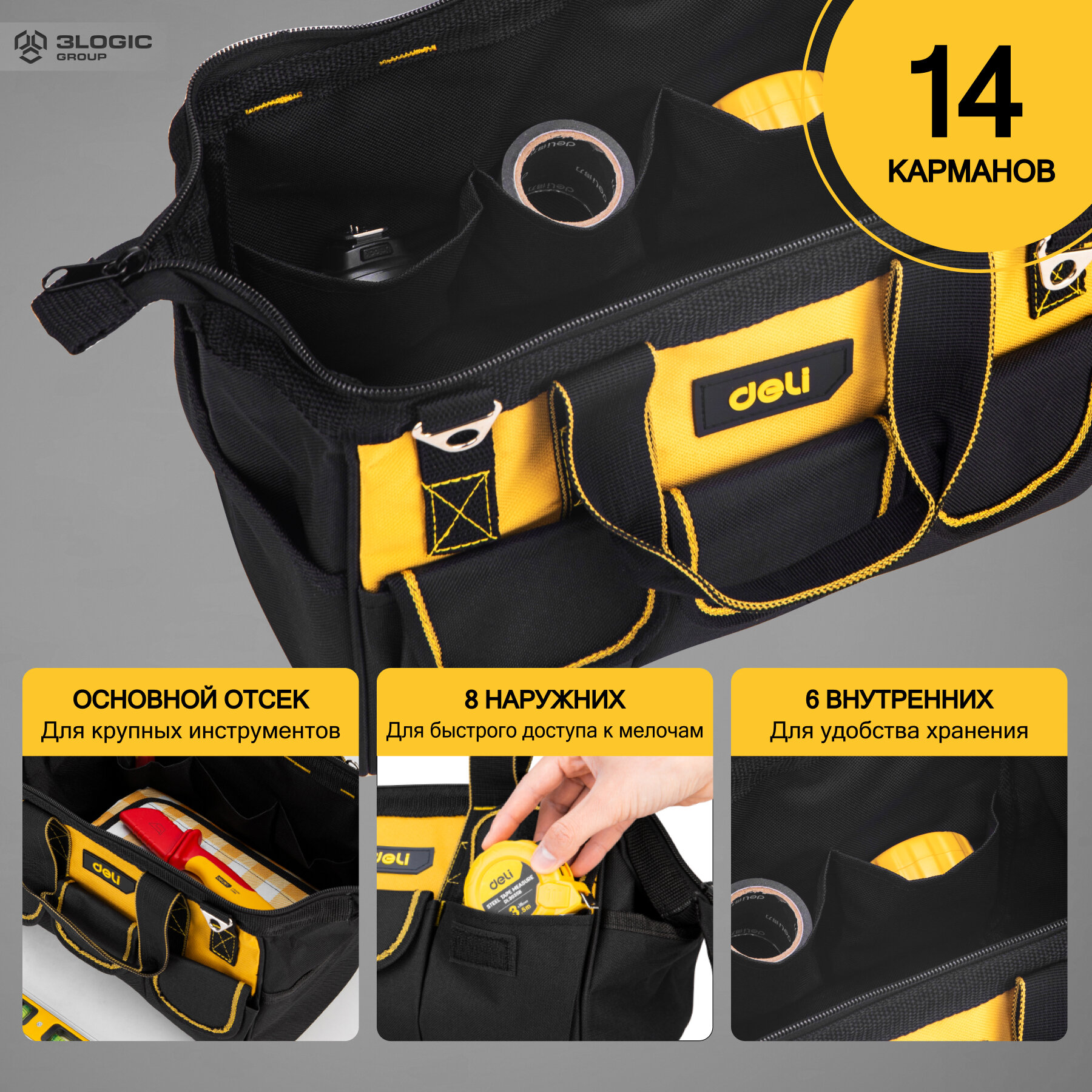 Сумка для инструментов Deli DL430113 310x170x220мм 14карманов, водоотталкивающая ткань Oxford, плечевой ремень