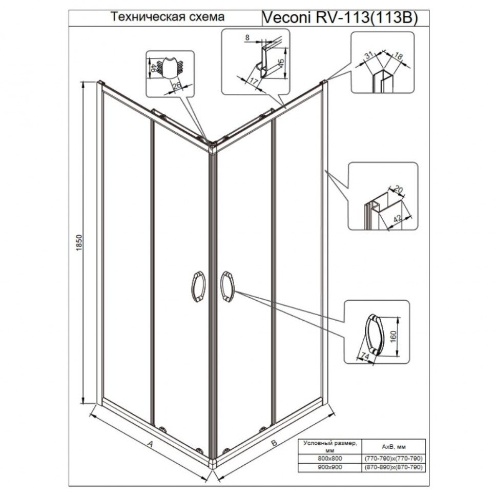 Душевой уголок Veconi RV-113B RV113B-80-01-C4 80х80 см, черный матовый