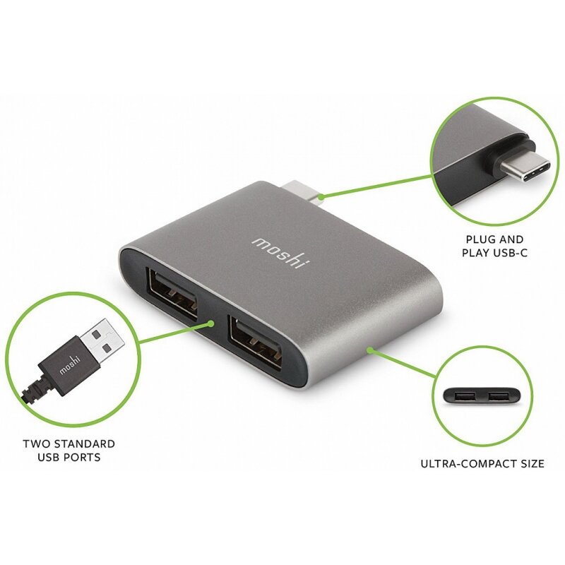 Переходник Moshi USB-C to Dual USB-A серый космос интересное: