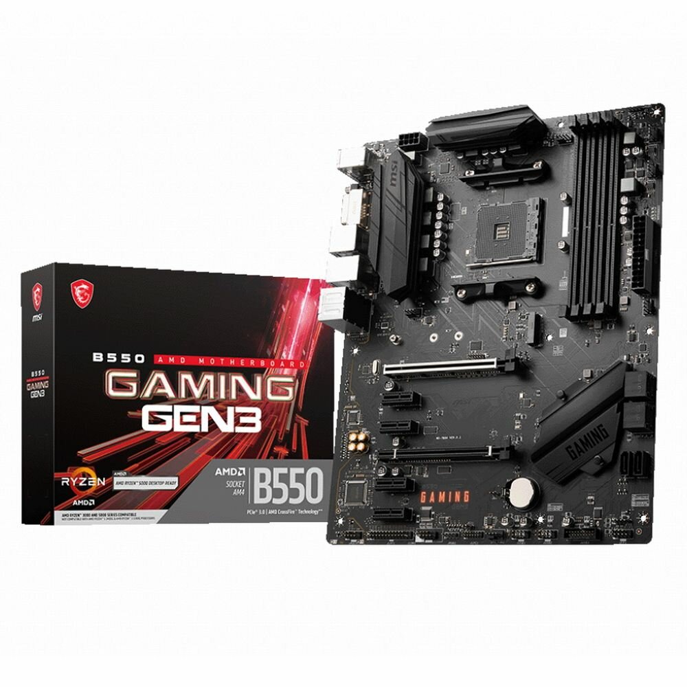 Материнская плата MSI B550 Gaming GEN3 B550 Socket AM4 4xDDR4, 6xSATA3, RAID, 1xM.2, 2xPCI-E16x, 4xUSB3.2, DVI-D, HDMI, Glan, ATX