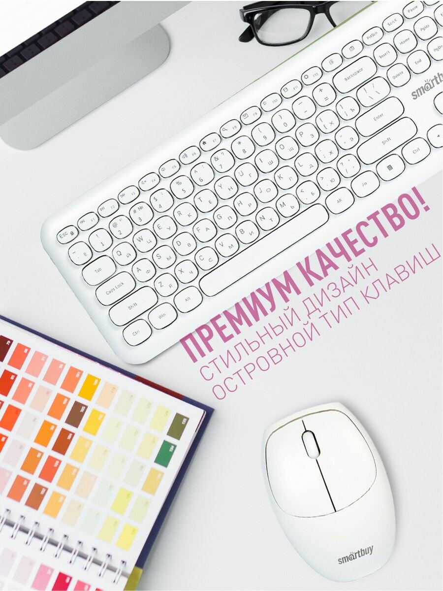 Комплект - клавиатура и мышь, беспроводные, Smart Buy SBC-666395AG-W, белые, 1 набор
