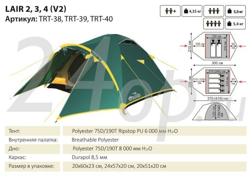 | Материал тента | полиэстер (75D 190T RipStop PU) |