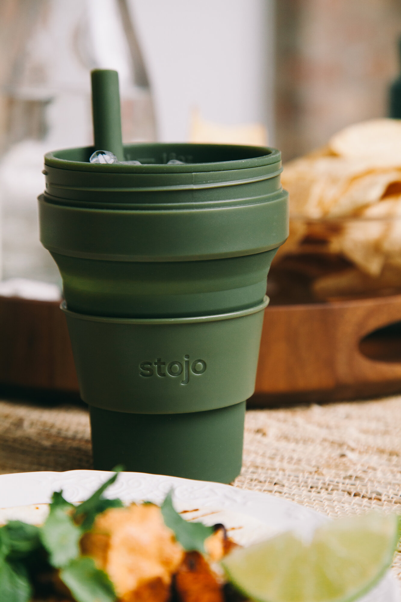 Купить Складной силиконовый стакан с крышкой STOJO 470 мл, цвет оливковый