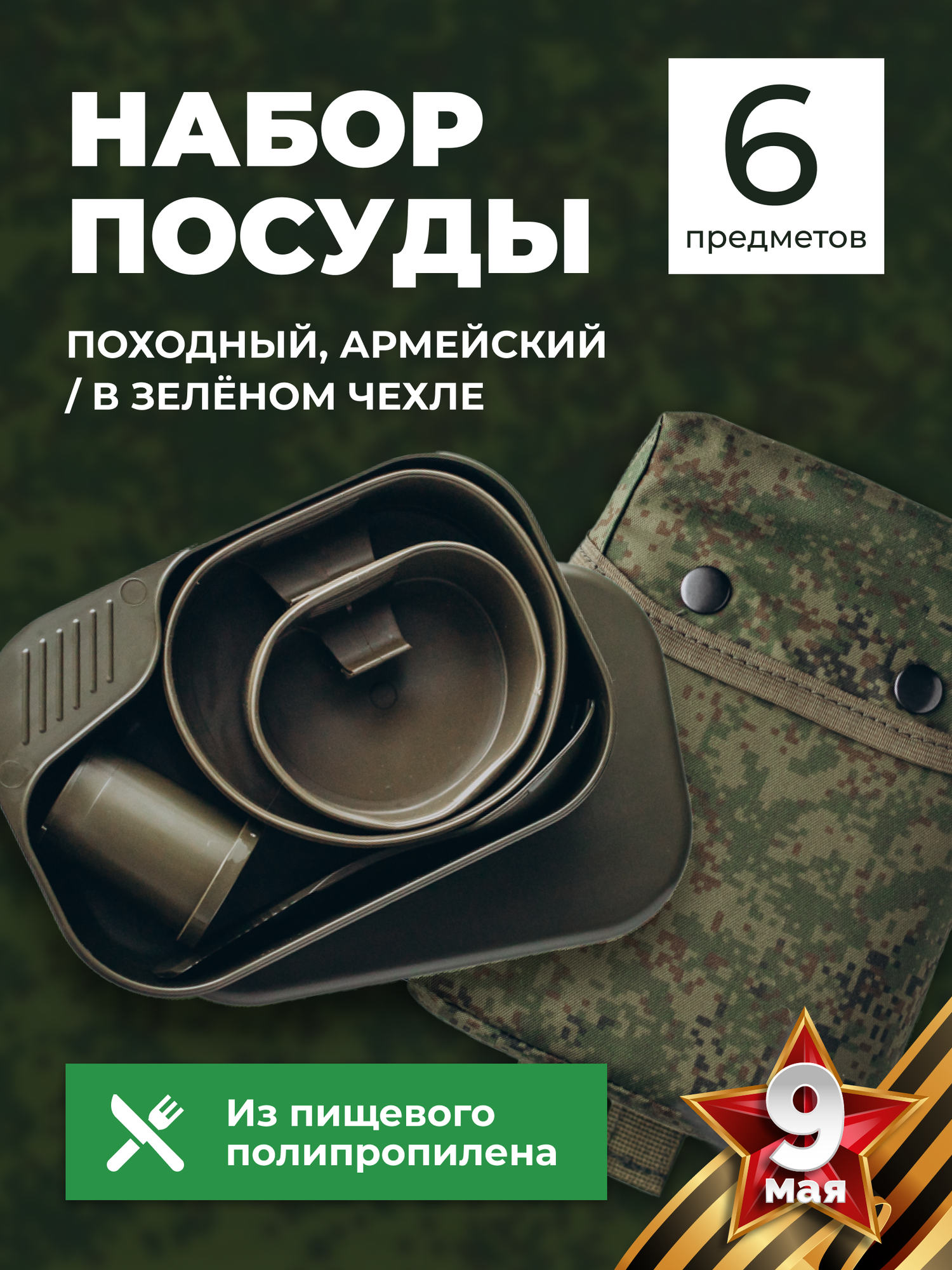 Набор посуды 6 предметов походный, армейский в чехле
